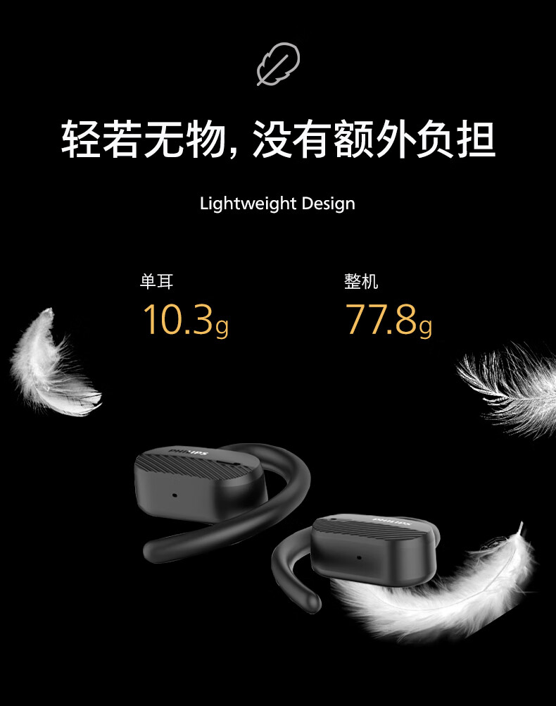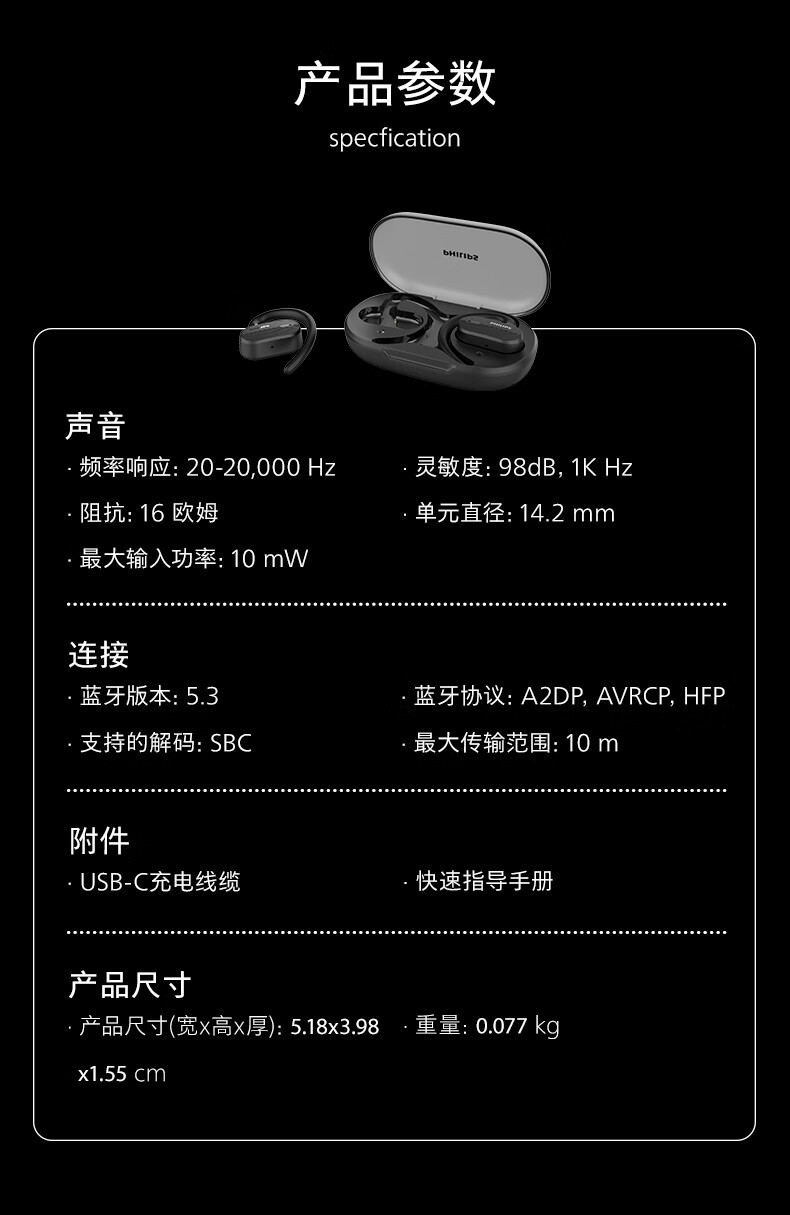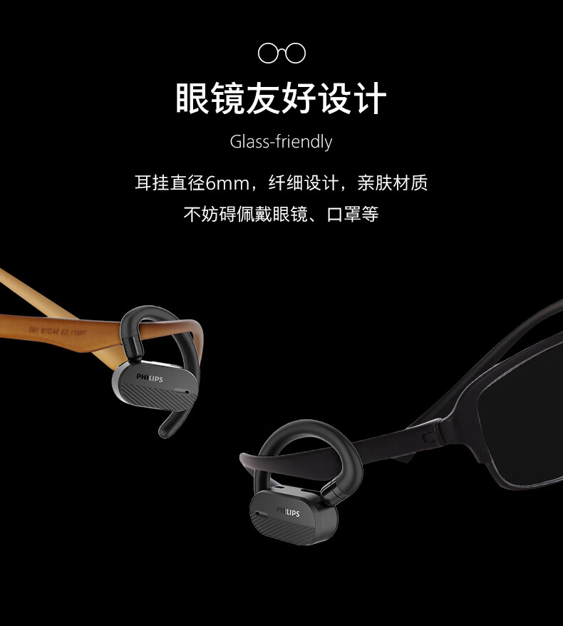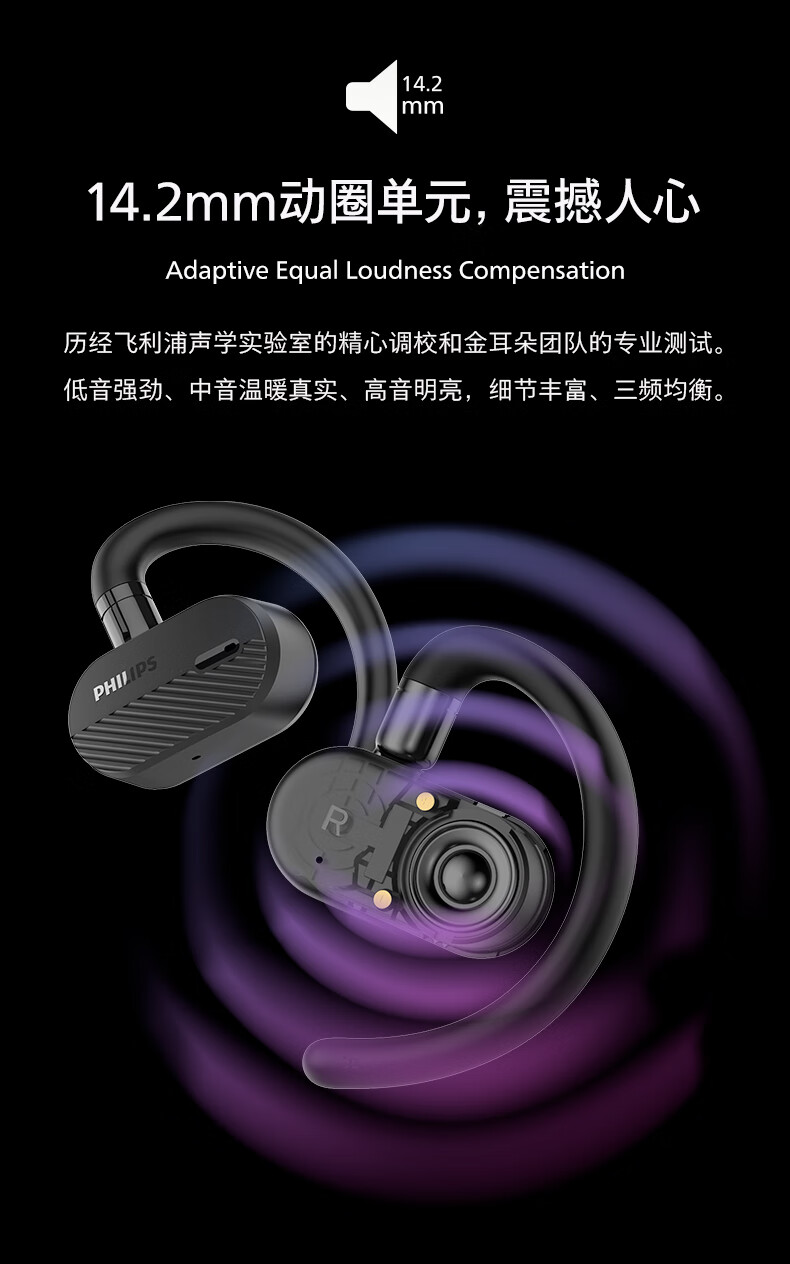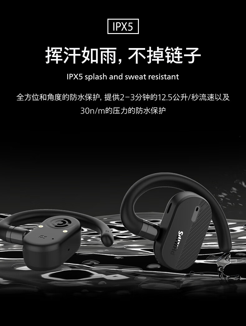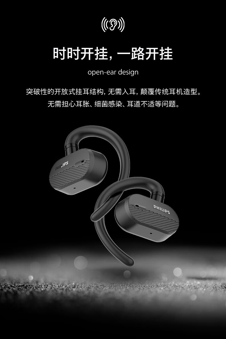 飞利浦(PHILIPS)TAA6708 开放挂耳式蓝牙运动耳机 黑色
