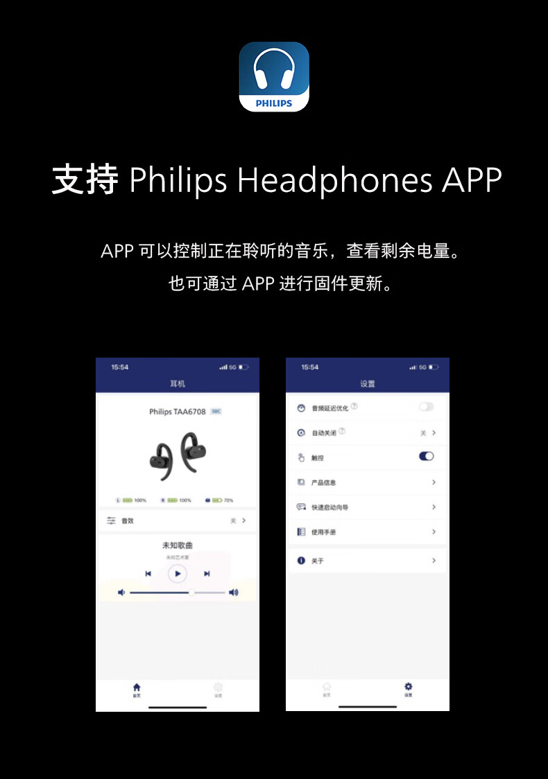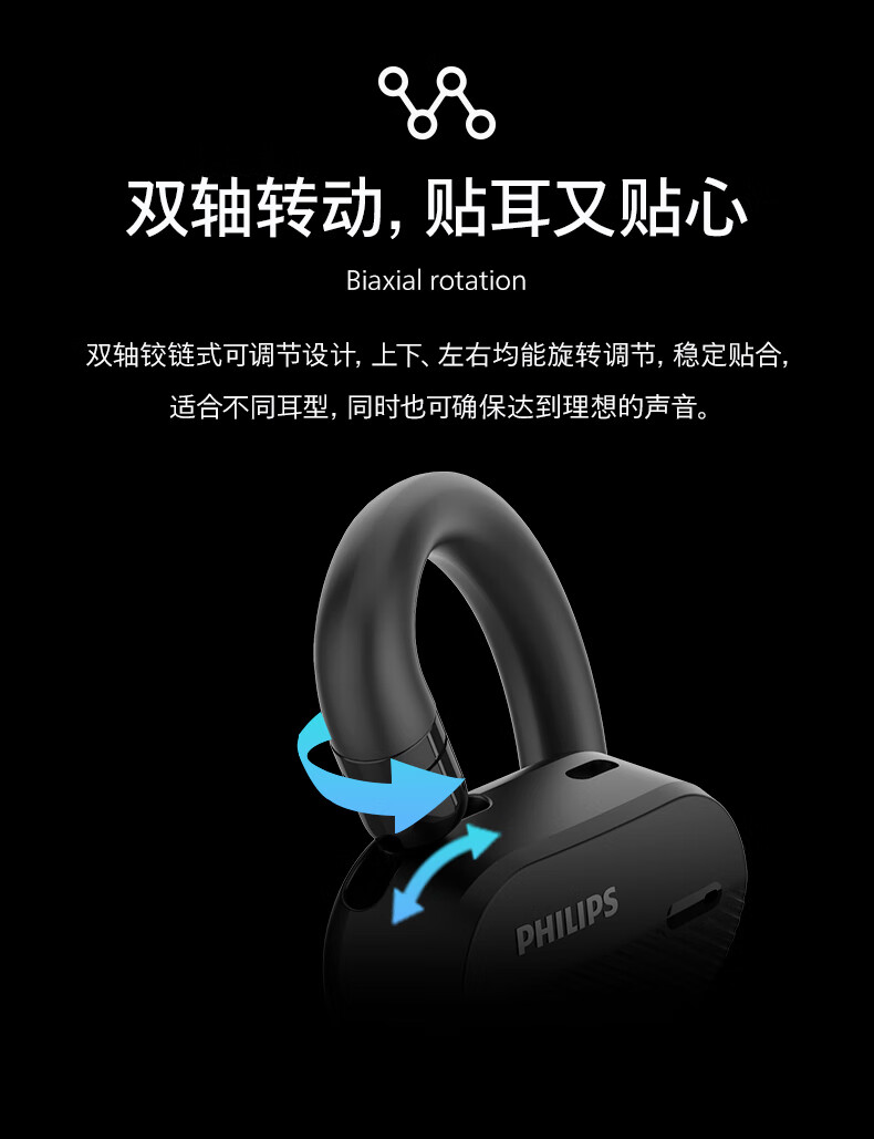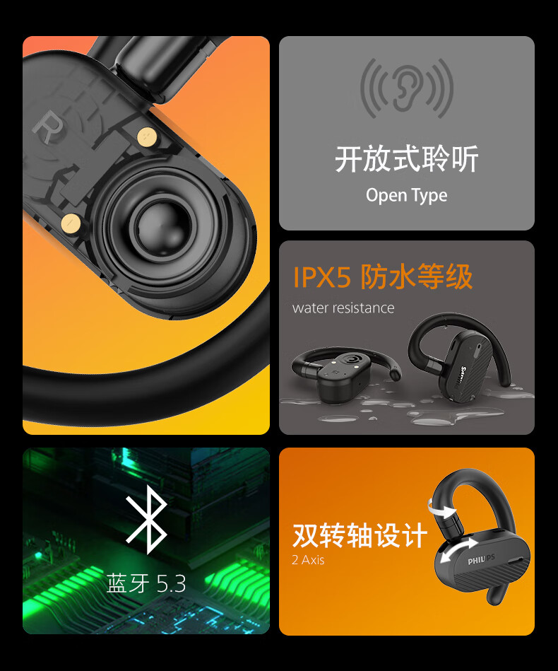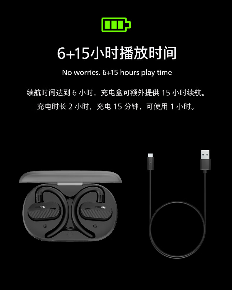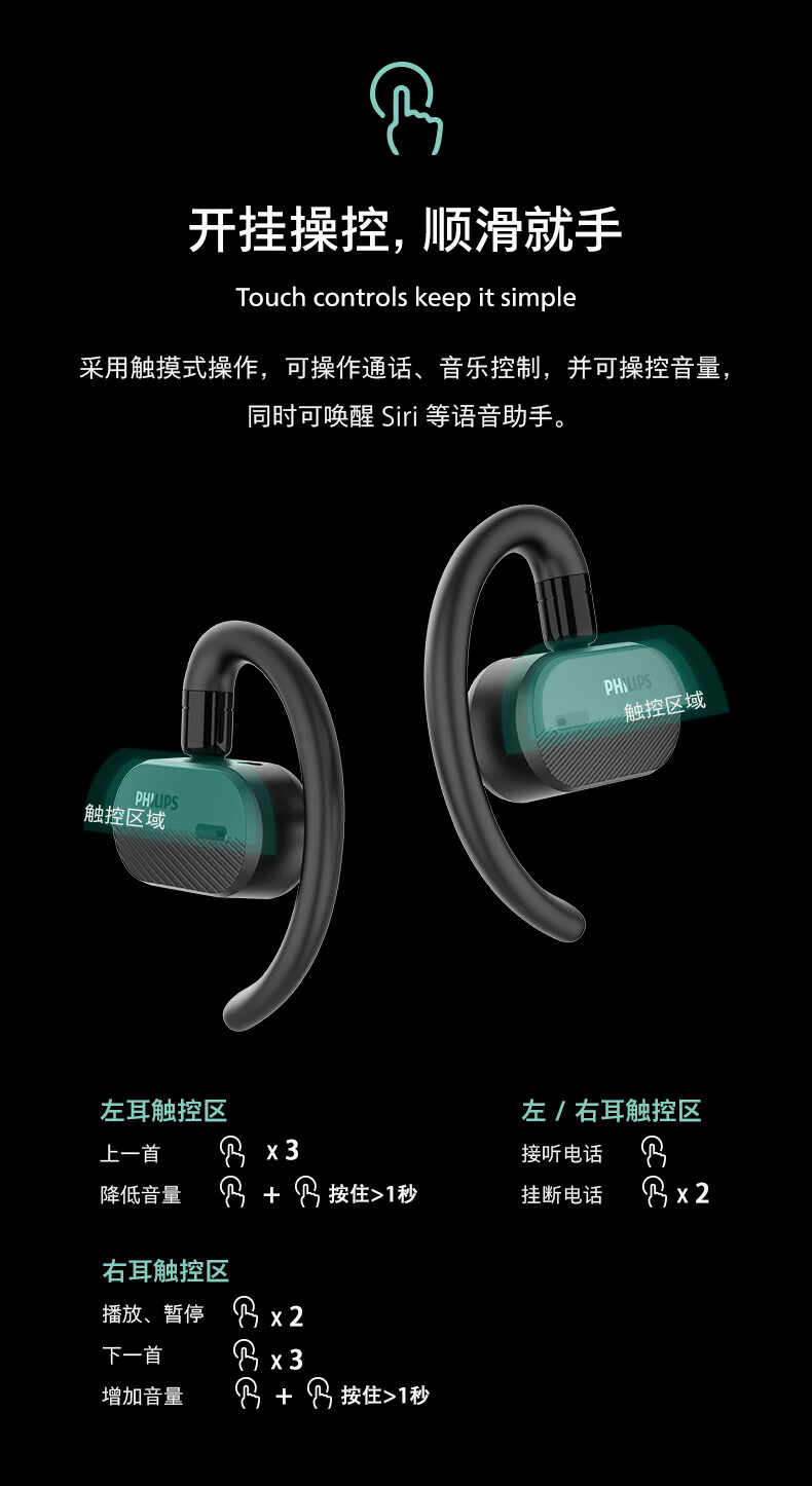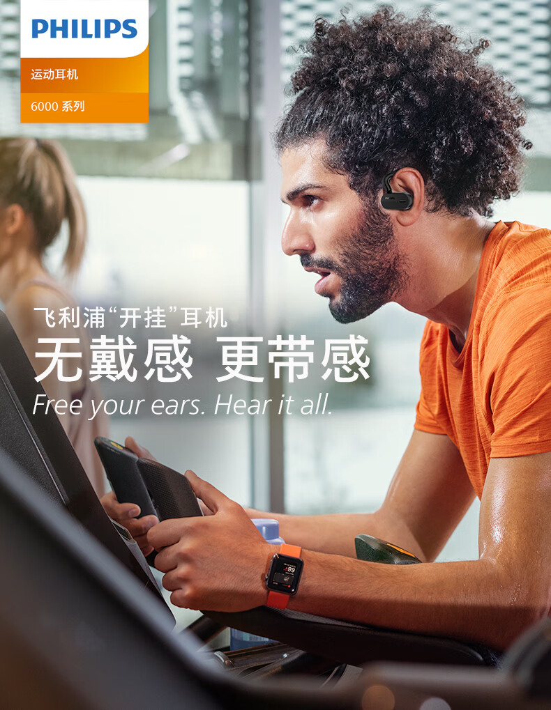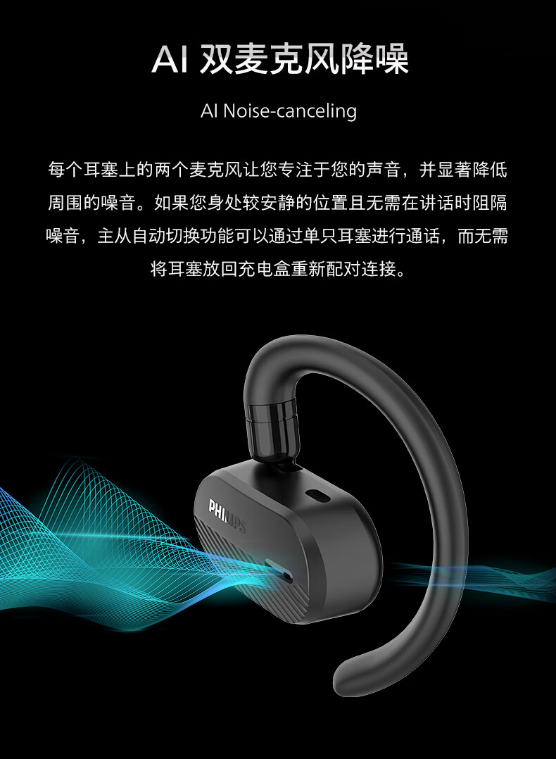 飞利浦(PHILIPS)TAA6708 开放挂耳式蓝牙运动耳机 黑色