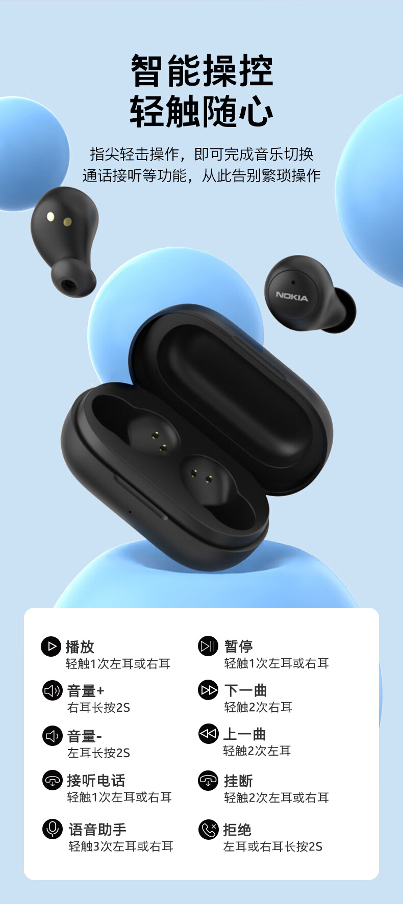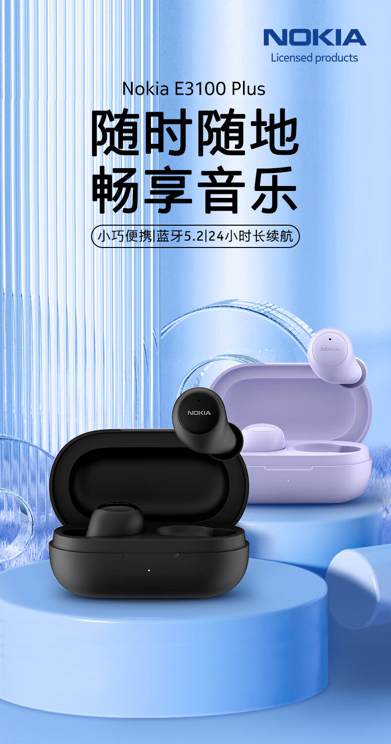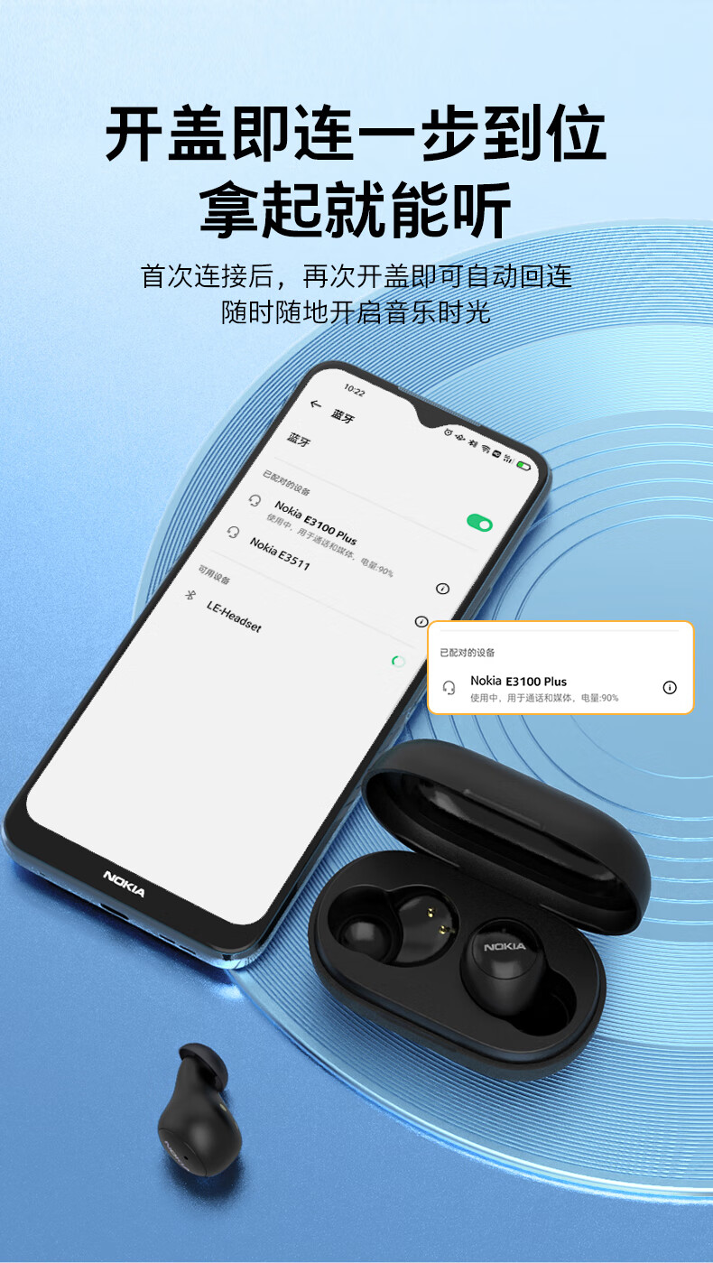 诺基亚(NOKIA) E3100Plus真无线蓝牙耳机通话降噪入耳式音乐耳机适用于苹果华为小米 副 白色