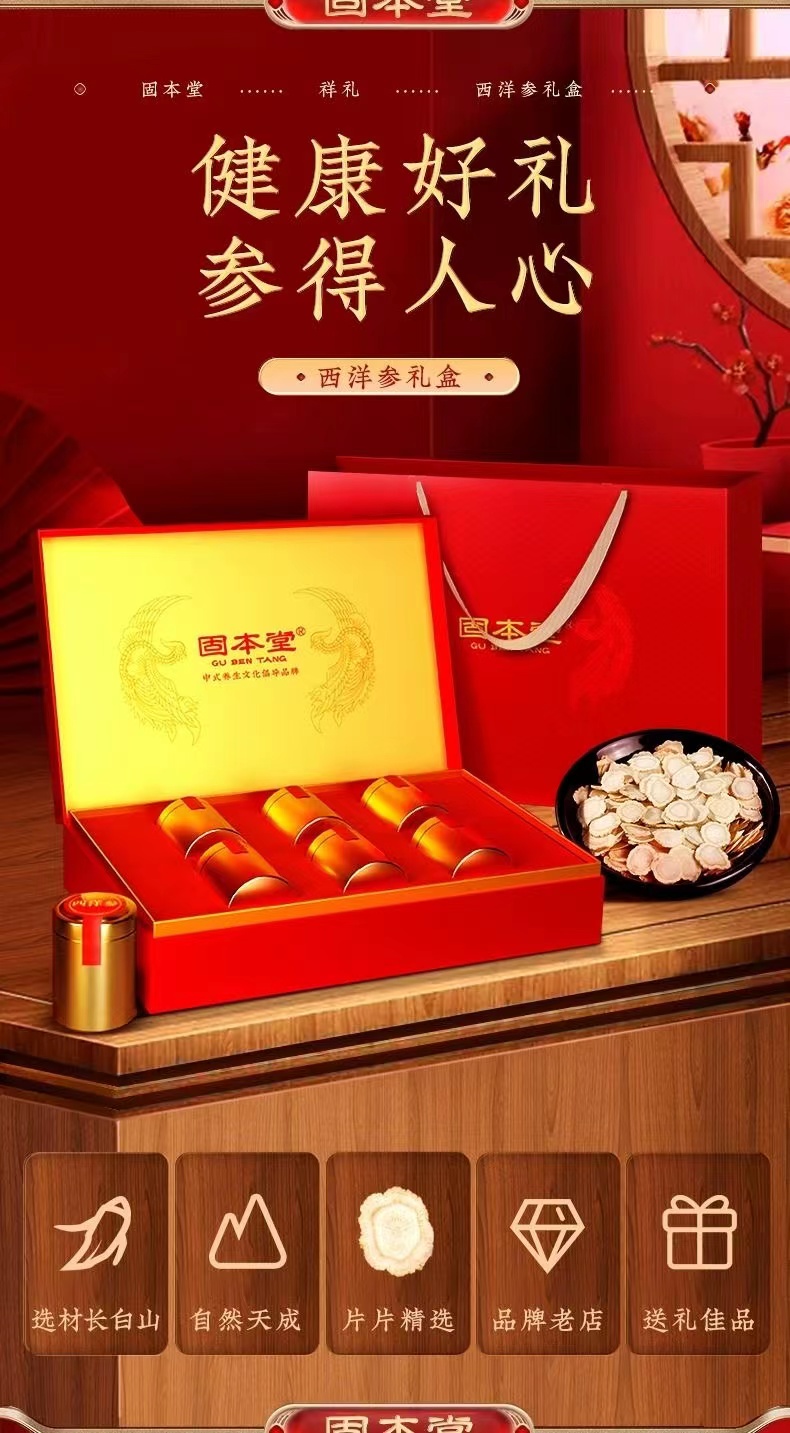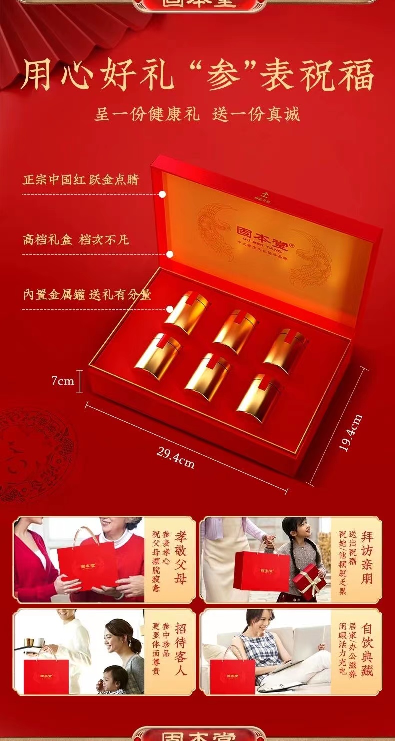 固本堂西洋参片礼盒90克(15g*6罐)(单位:礼盒) 红色