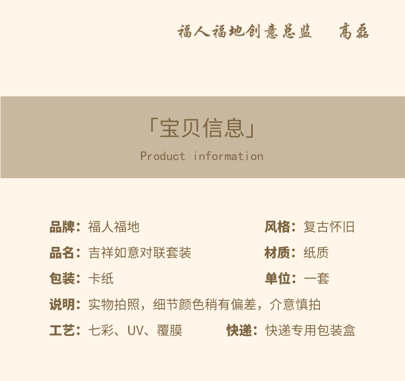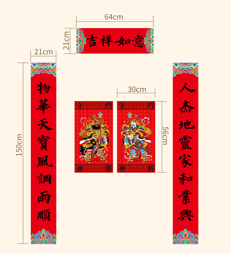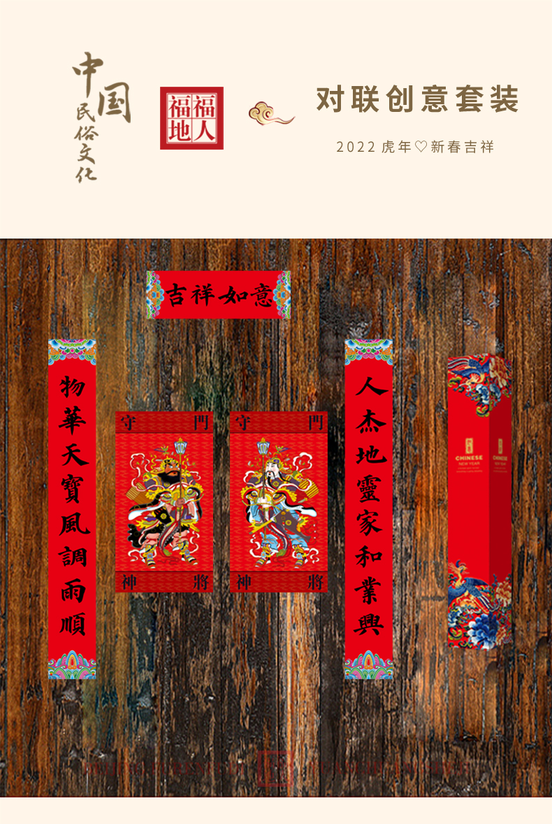 福人福地新年对联礼盒套装春节装饰2024春联大门福字贴门贴龙年用品大全吉祥如意大对联套装(单位:套) 红色