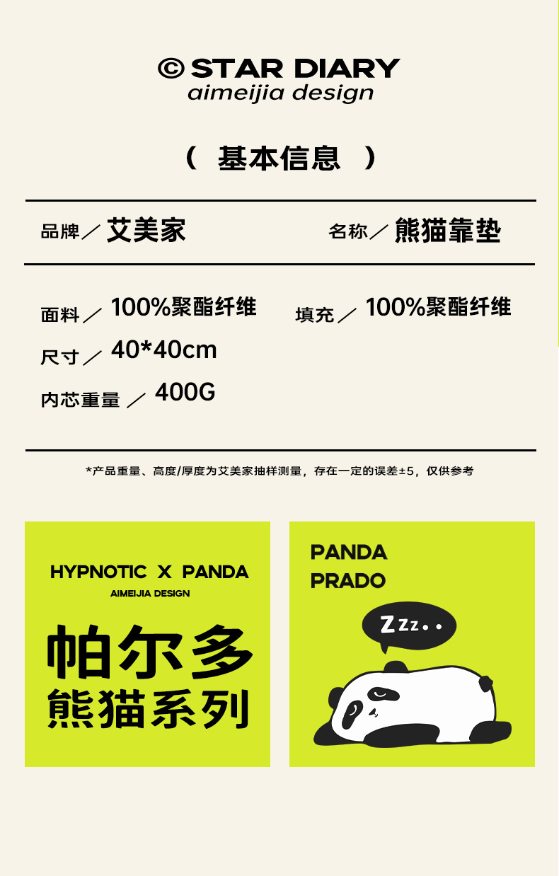 艾美家 熊猫靠垫 幸福pardo-白 40*40cm (单位:个) 白色