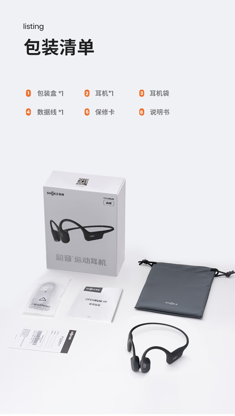 韶音(SHOKZ)S803 Air骨传导蓝牙无线耳机耳麦 开放式运动跑步长续航 单位:副 石墨黑
