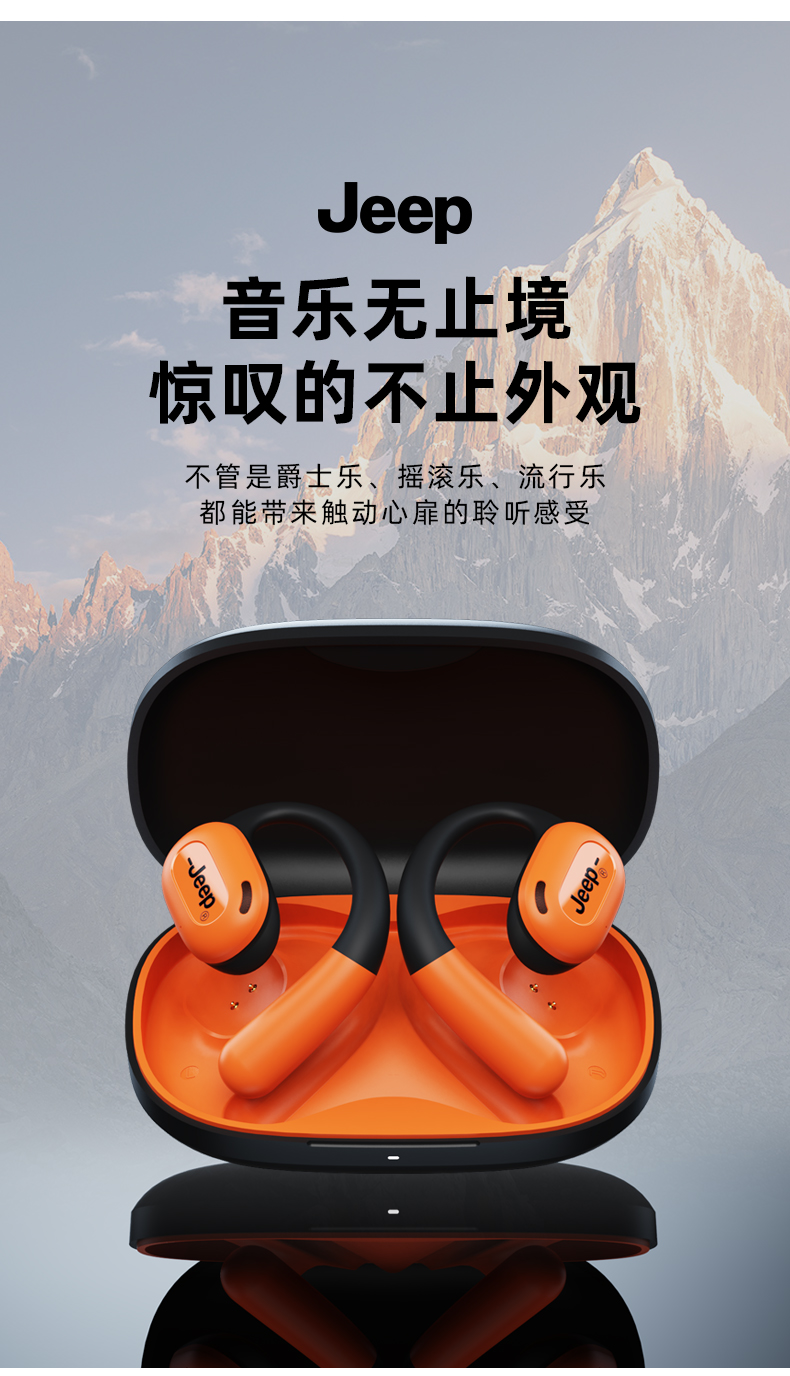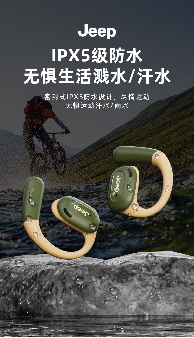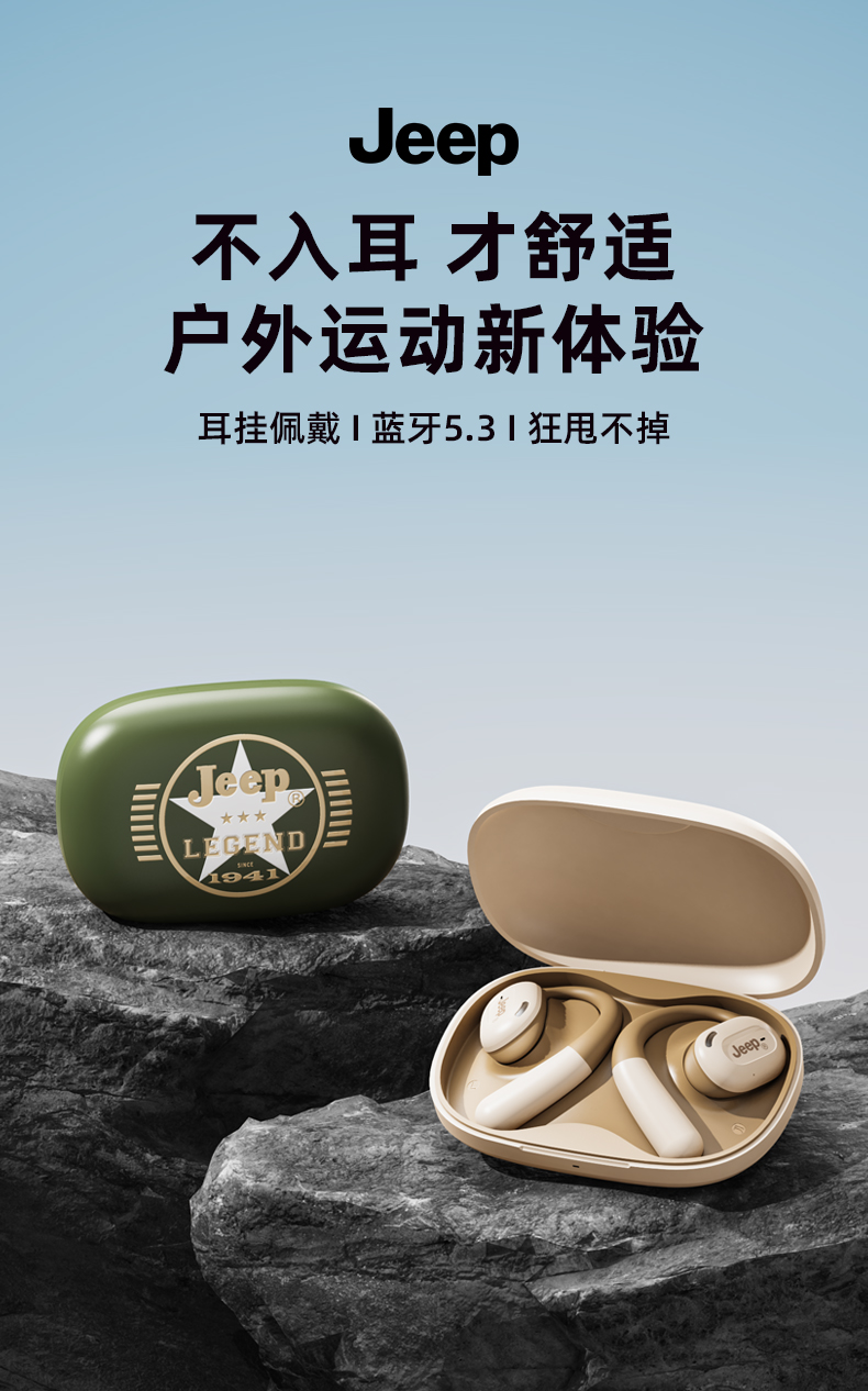 Jeep吉普 蓝牙耳机挂耳式 开放式真无线不入耳运动跑步通话降噪骨传导概念定向传音 单位:副 米白