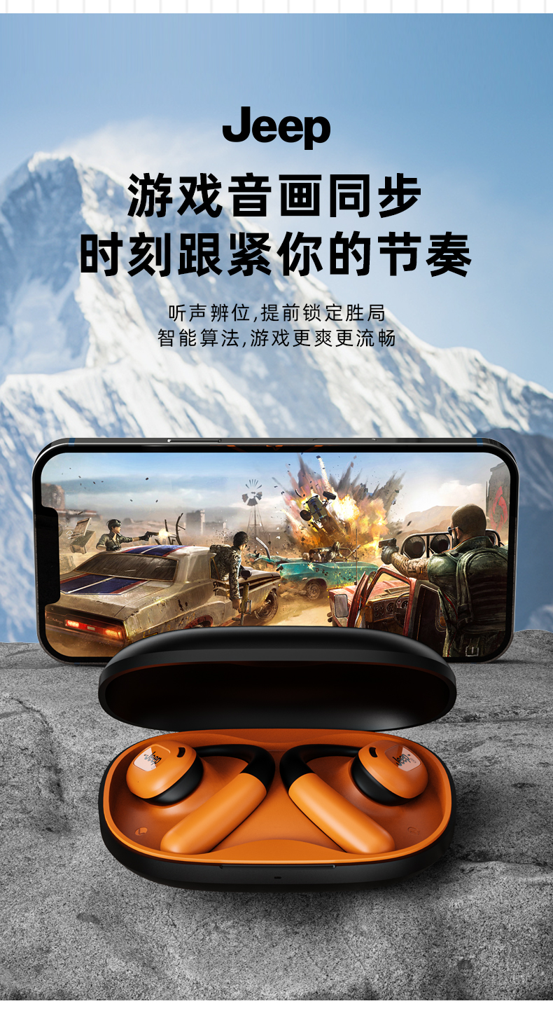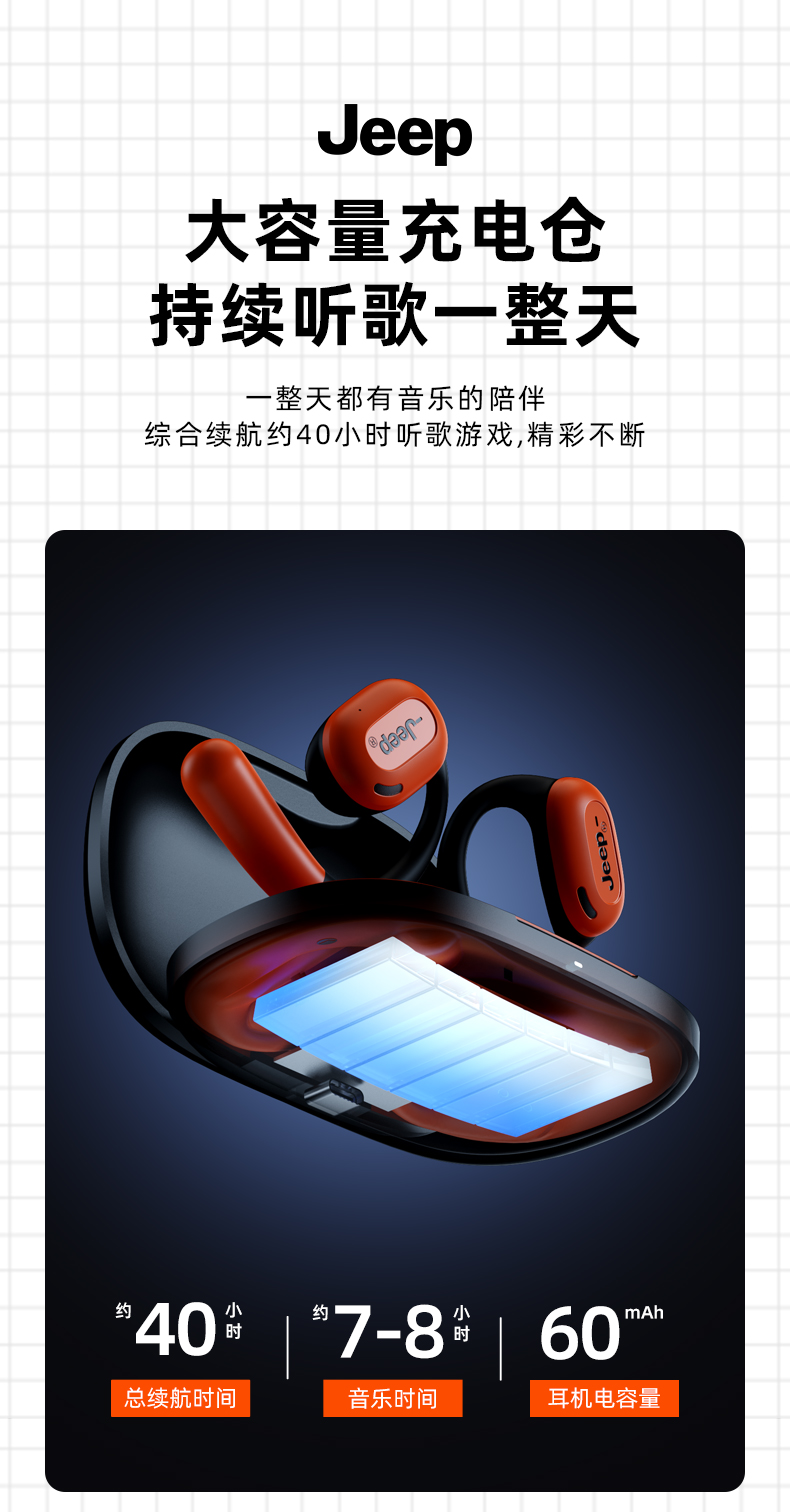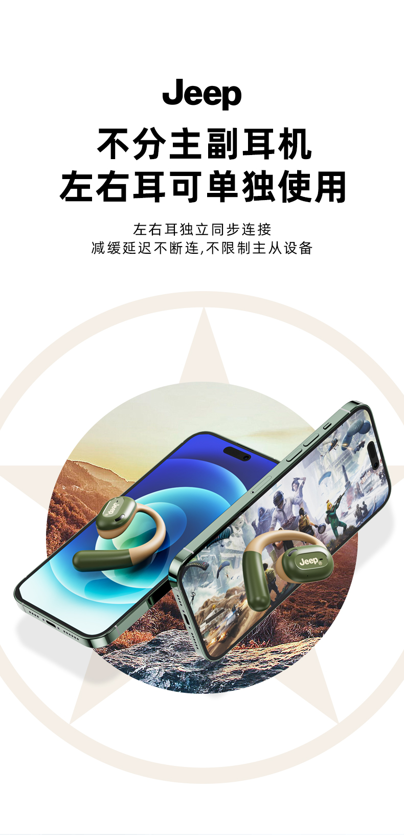 Jeep吉普 蓝牙耳机挂耳式 开放式真无线不入耳运动跑步通话降噪骨传导概念定向传音 单位:副 米白