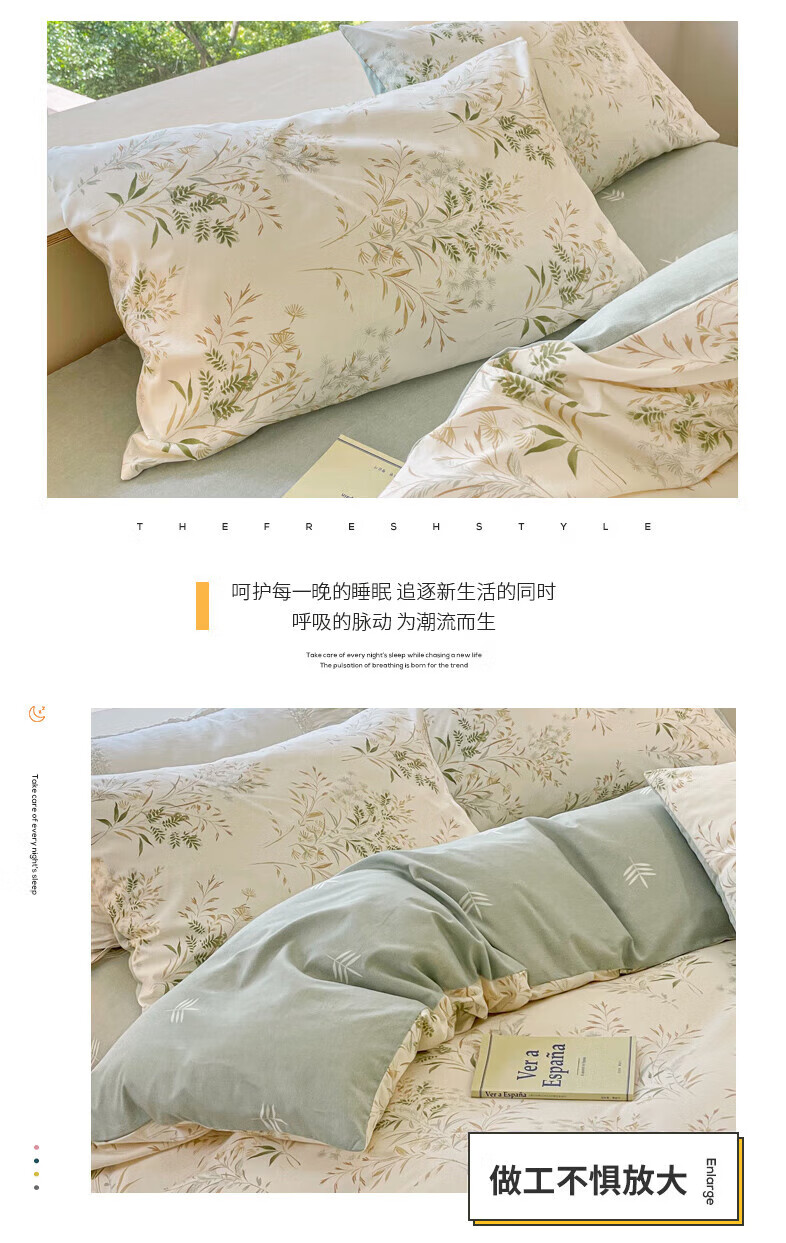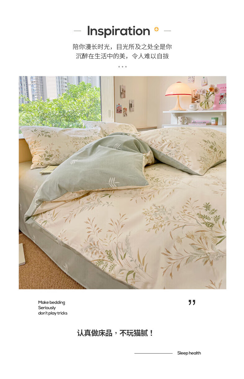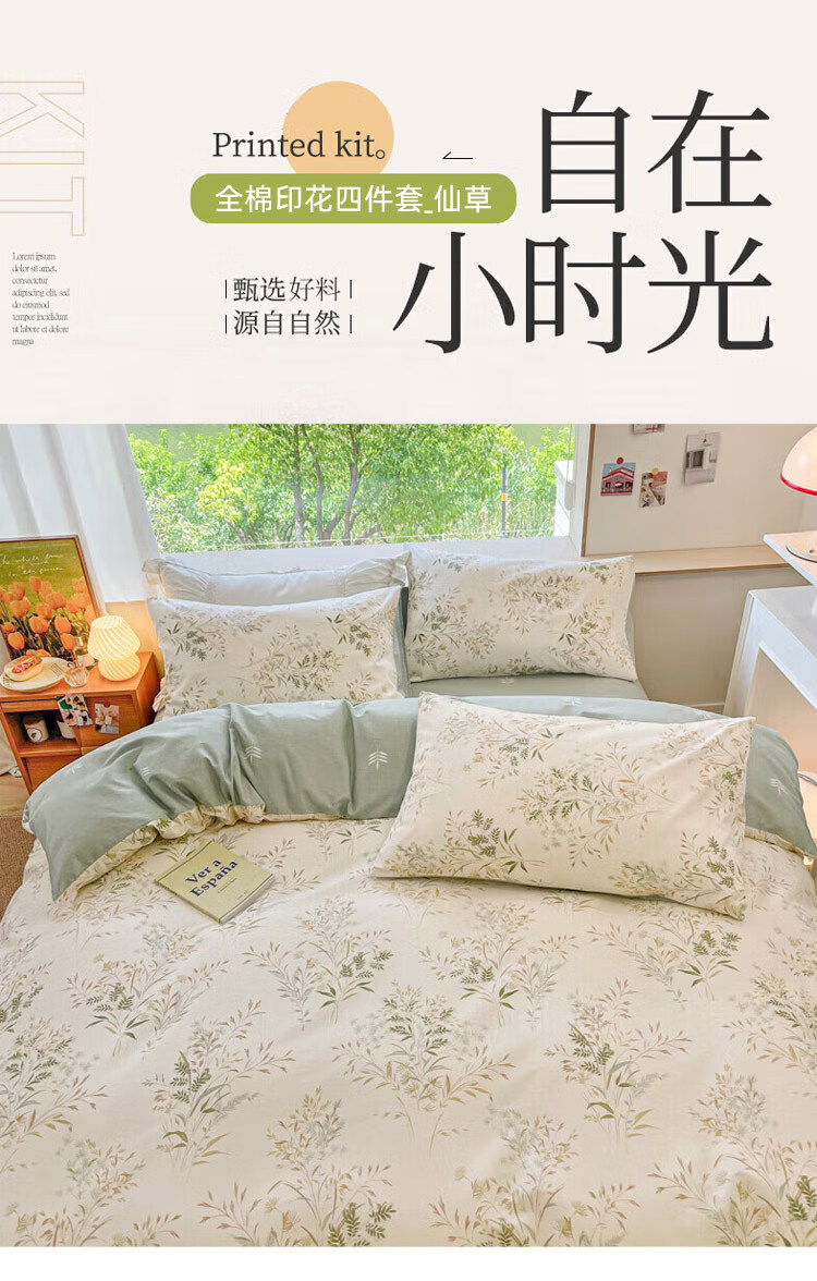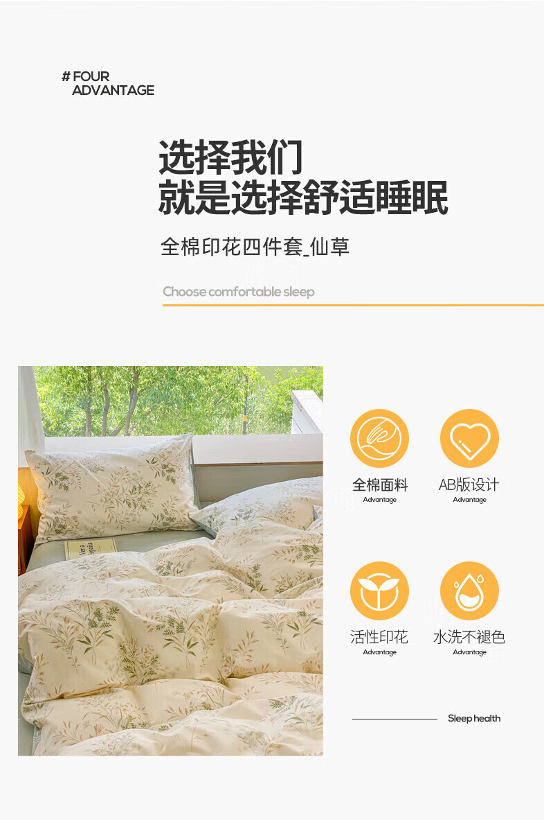 恒源祥H4YH85全棉四件套仙草200*230cm(单位:套) 绿色