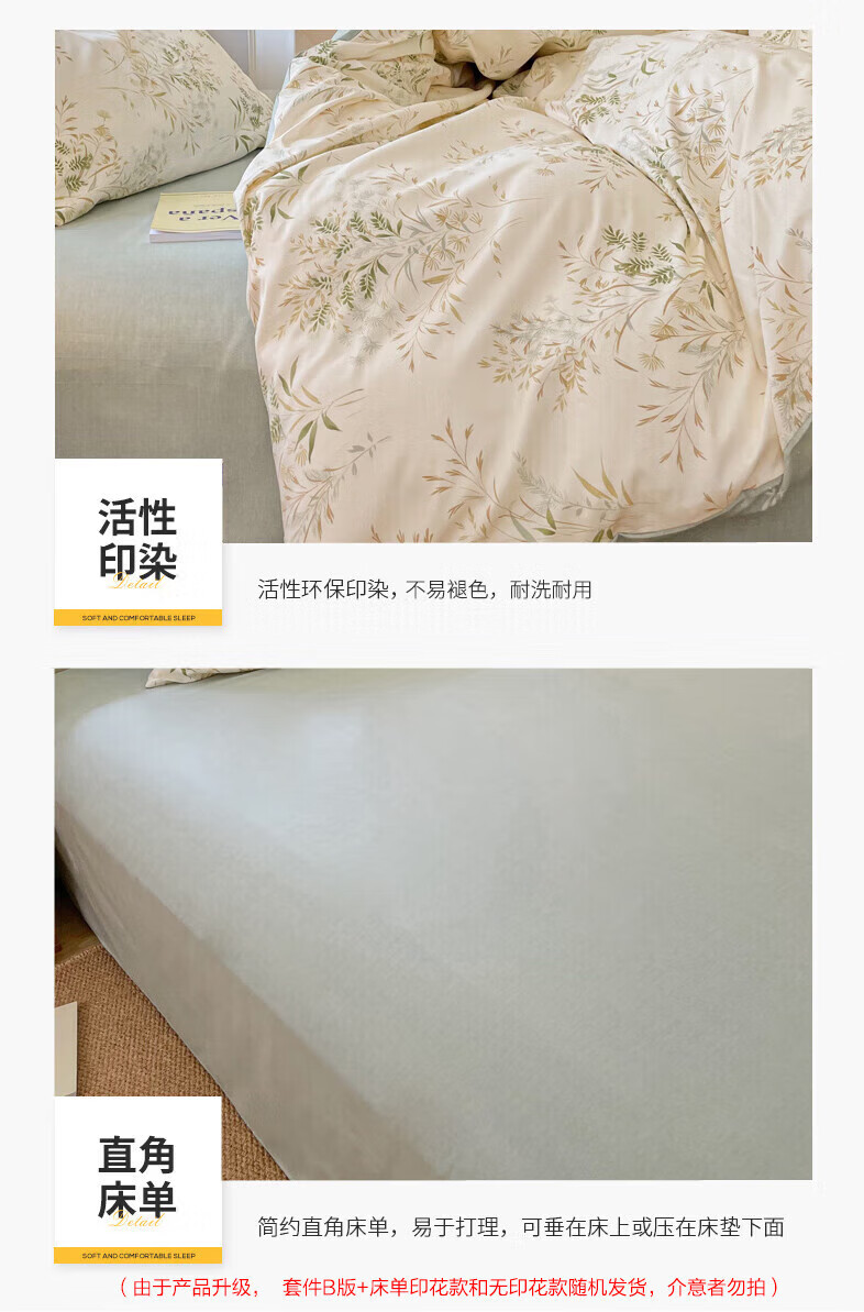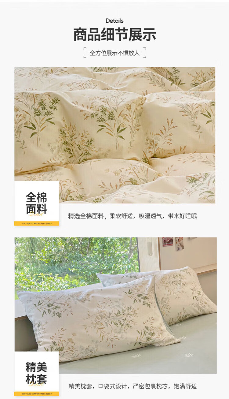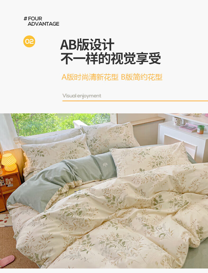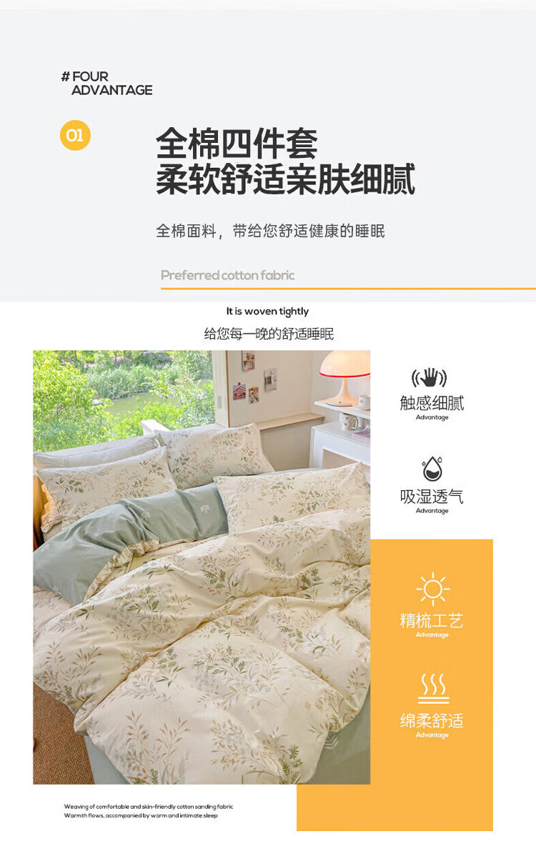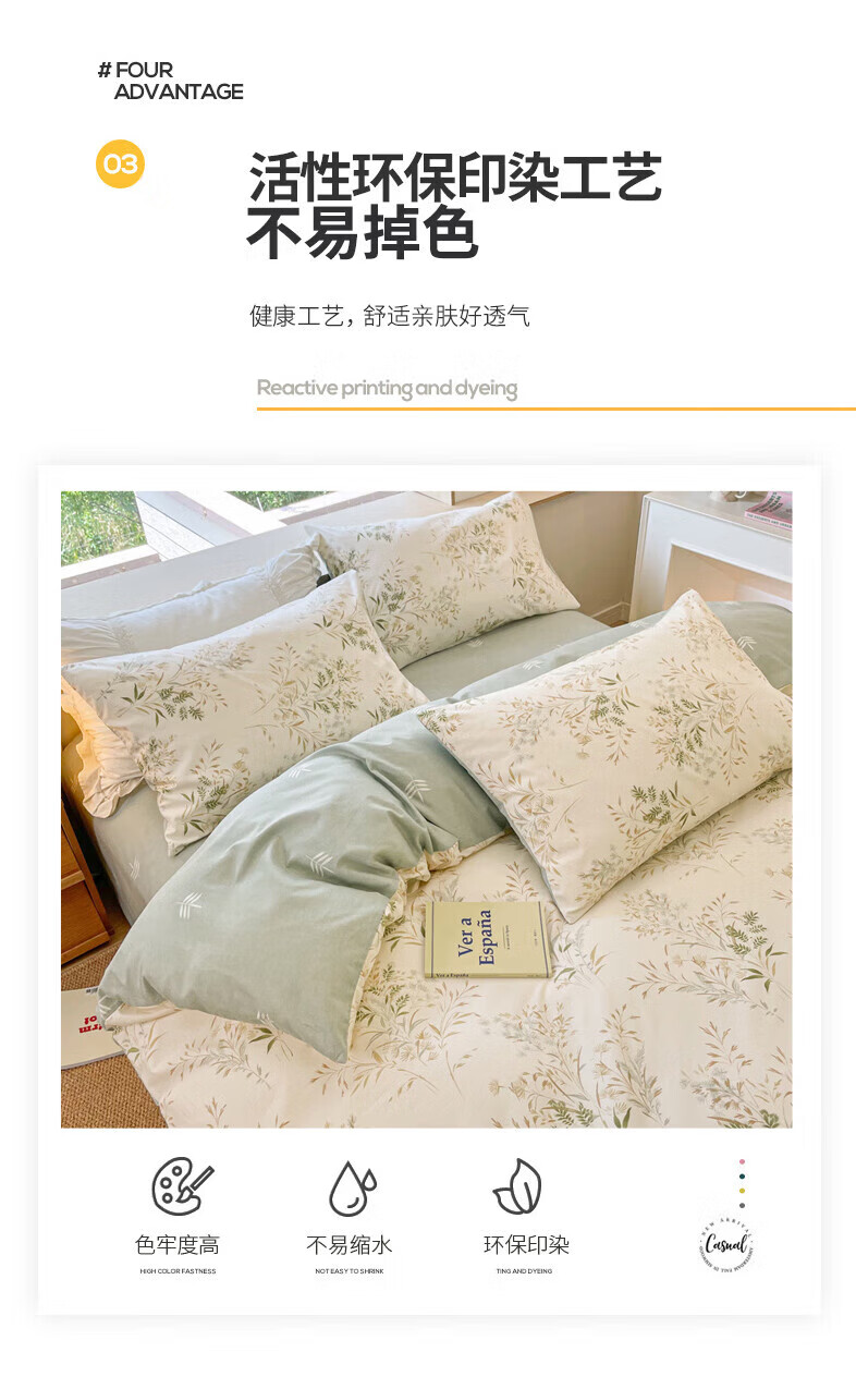 恒源祥H4YH85全棉四件套仙草200*230cm(单位:套) 绿色
