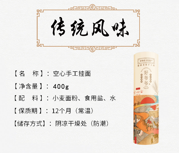 好爷爷手工空心面丝绸款原味把装400g 单位:把 丝绸款原味把装400g