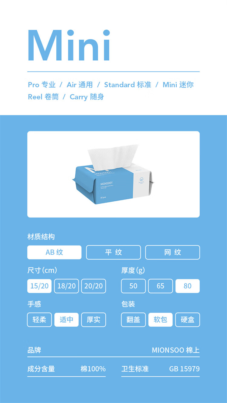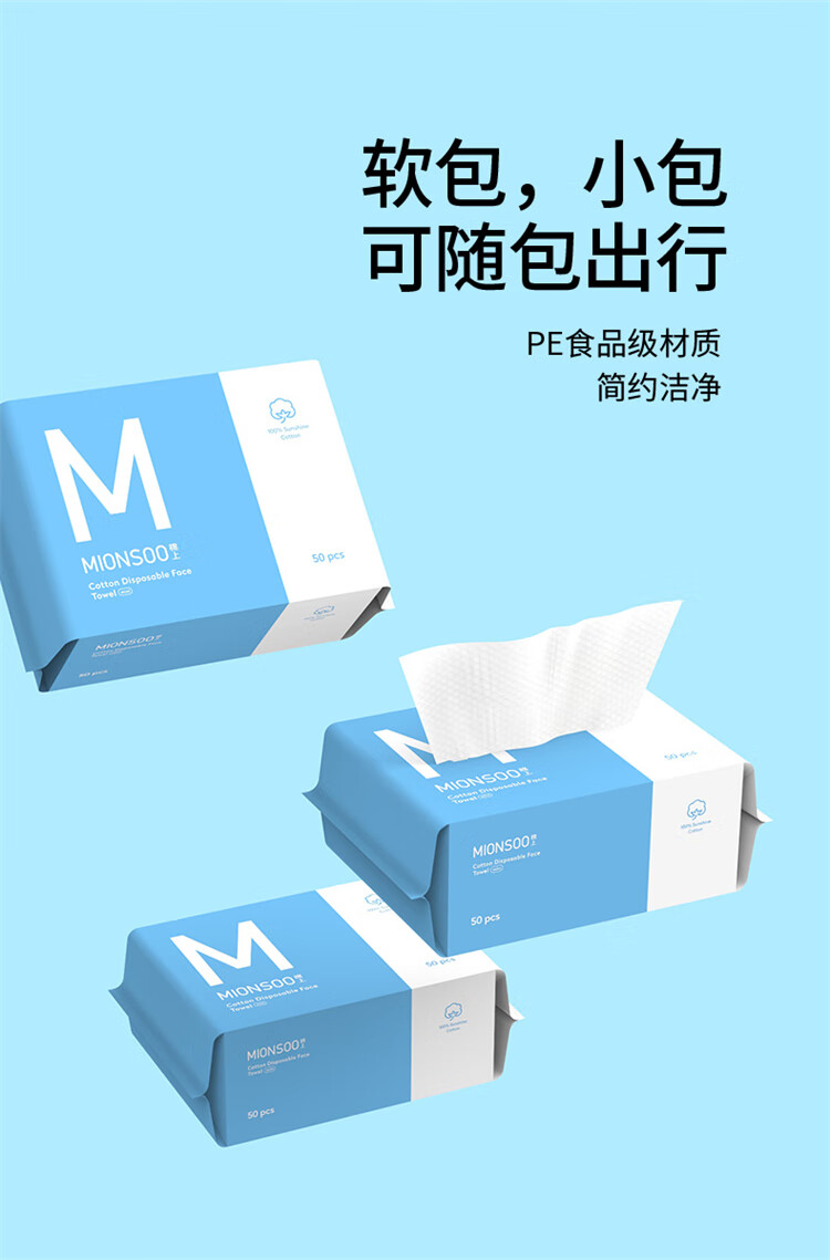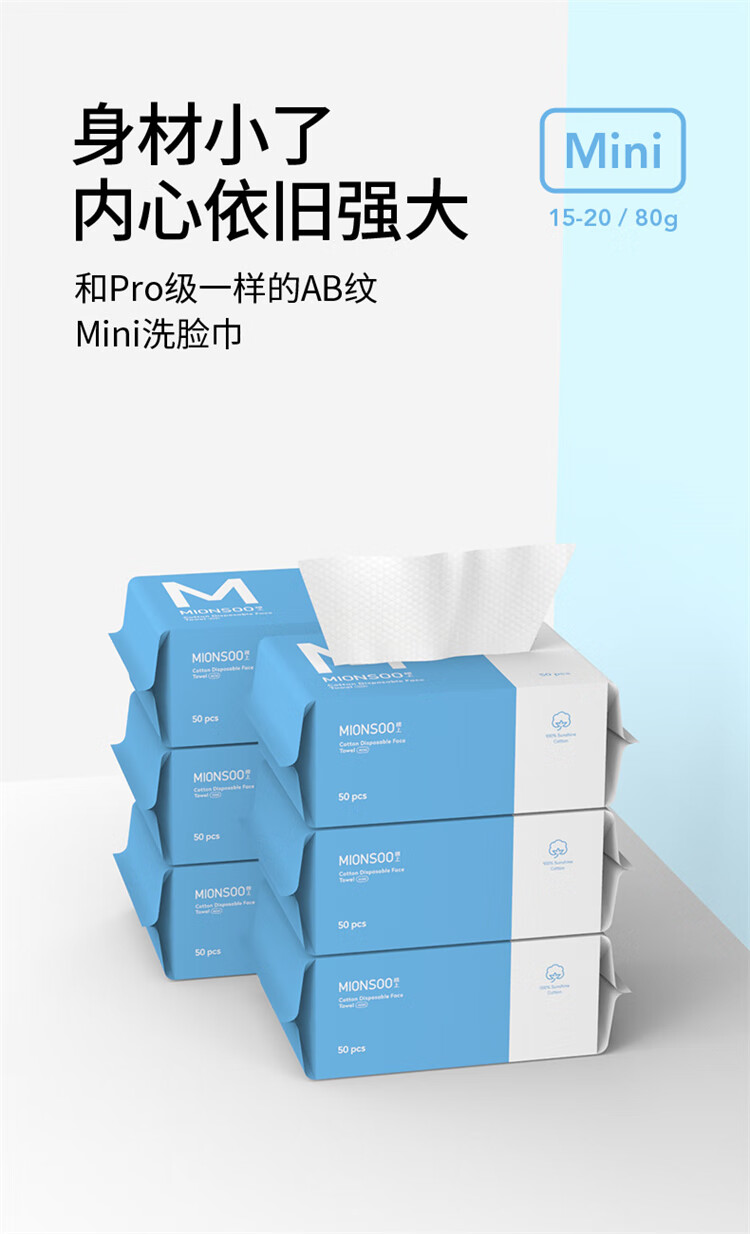 棉上mini一次性洗脸巾3包 全棉毛巾擦脸巾洁面巾洗面巾棉柔巾 单位:盒 白色