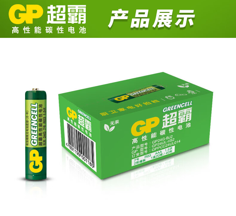 GP超霸-绿7号电池40粒/盒(20塑封) 绿色