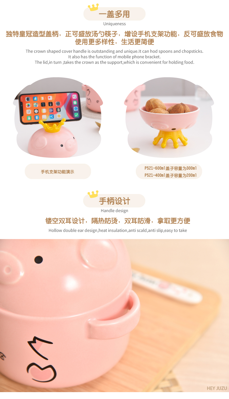 嘿猪猪皇冠营养炖盅(小号)P521-400ml 单位:套 茱萸粉