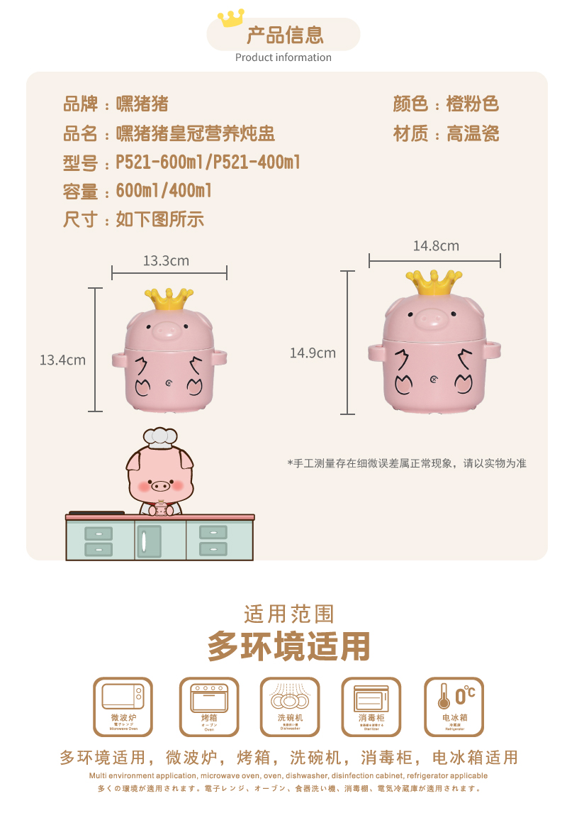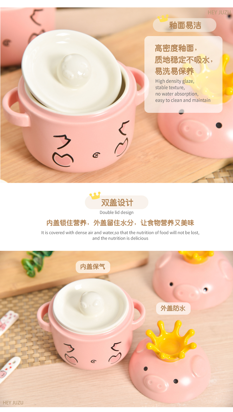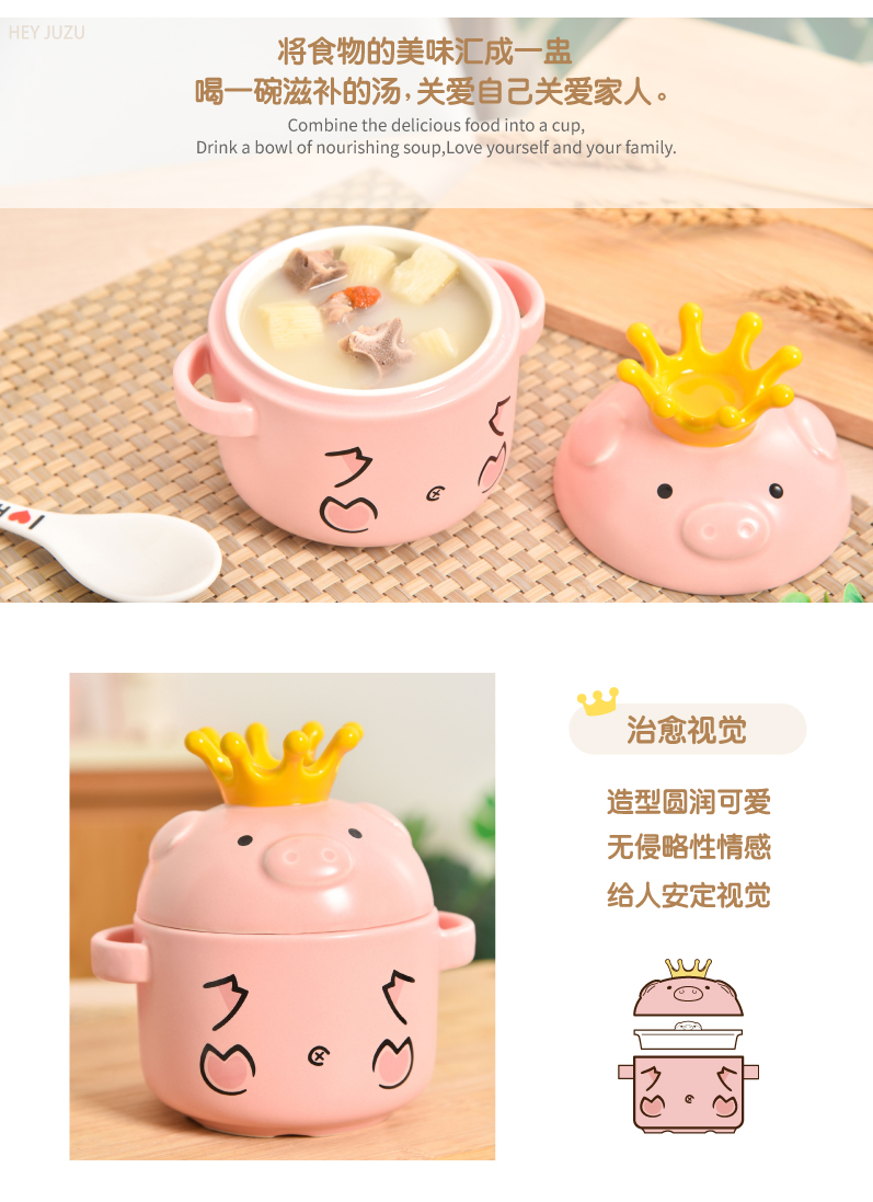 嘿猪猪皇冠营养炖盅(大号)P521-600ml 单位:套 茱萸粉