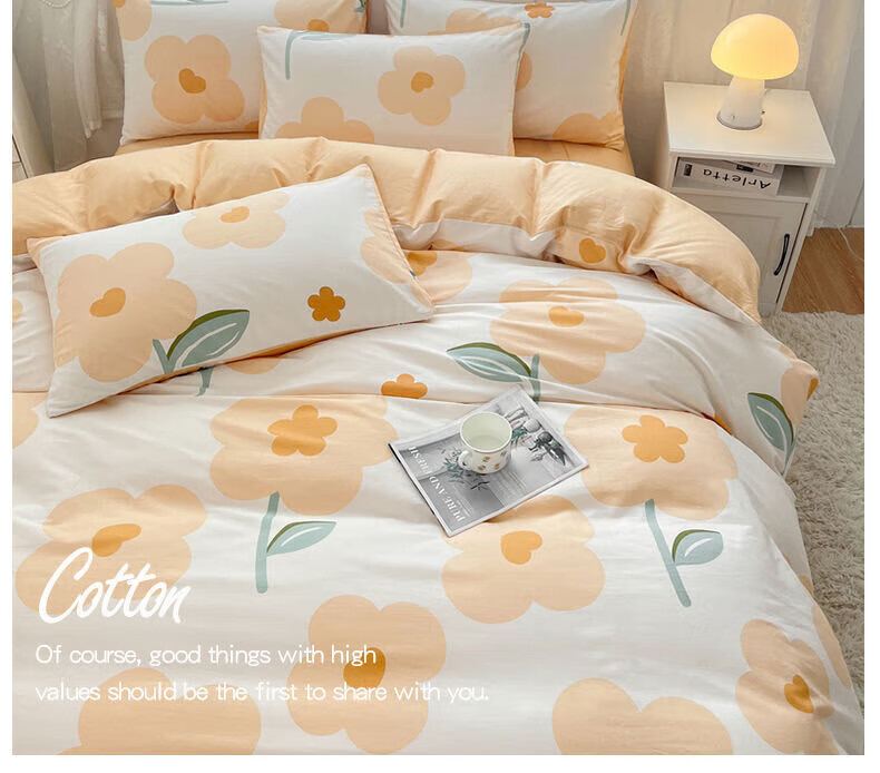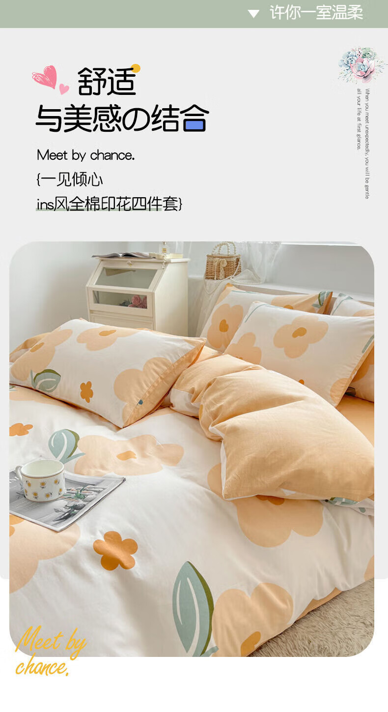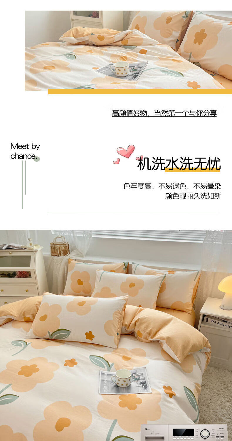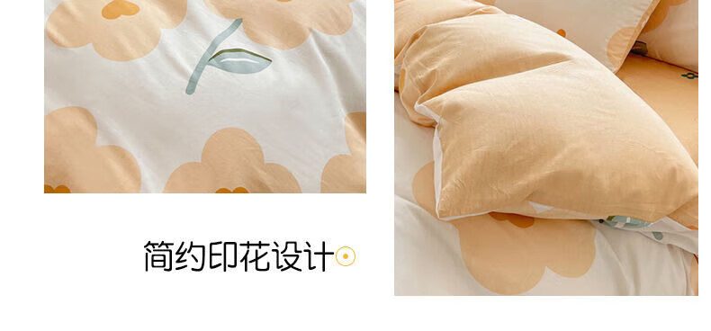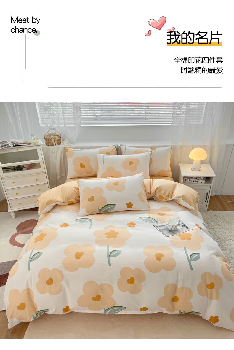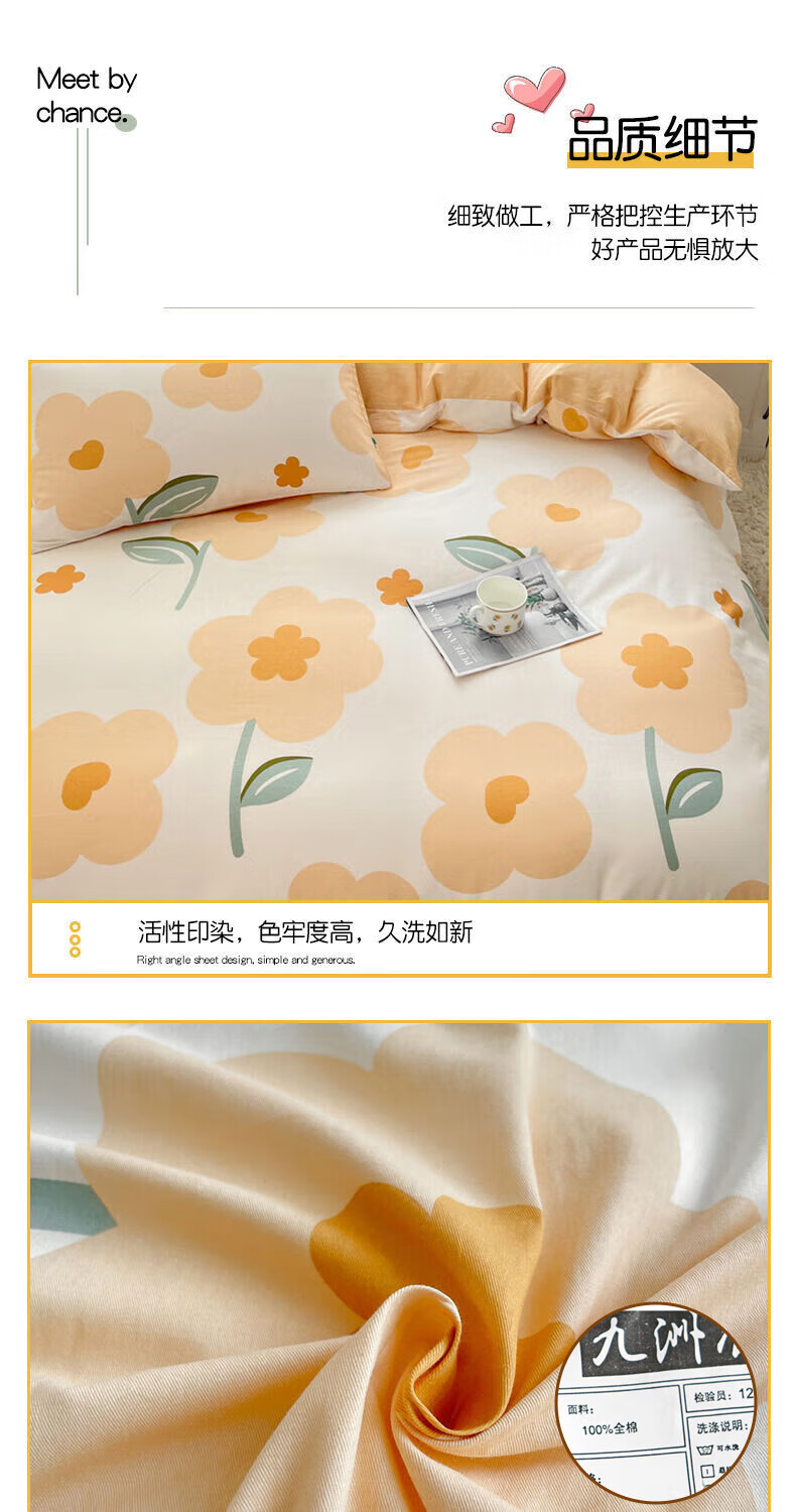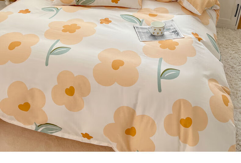 九洲鹿 J4YH500 全棉印花四件套-橘色花朵 200*230cm 混色