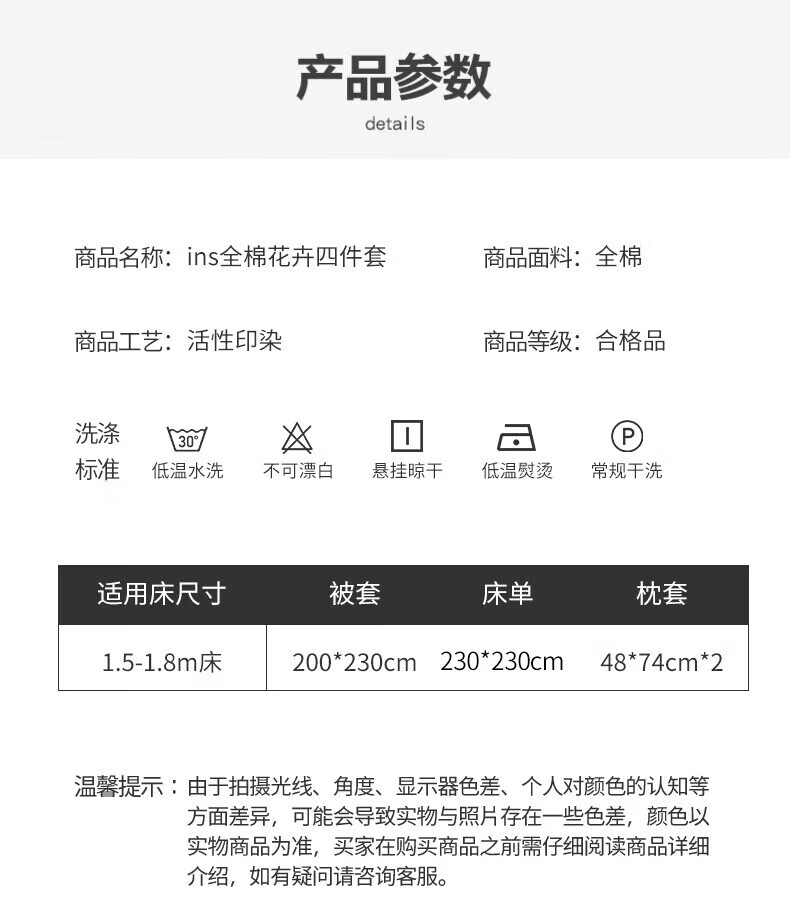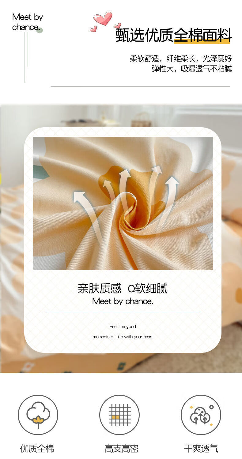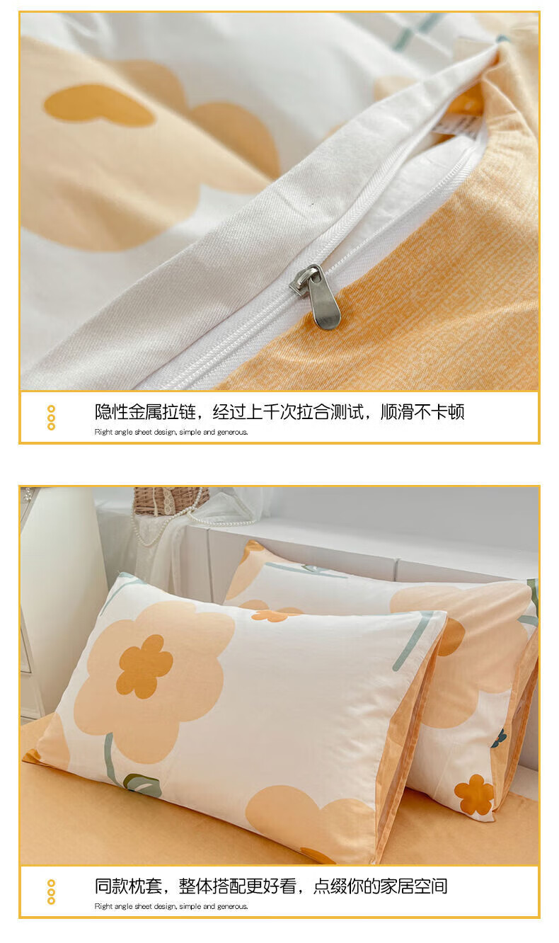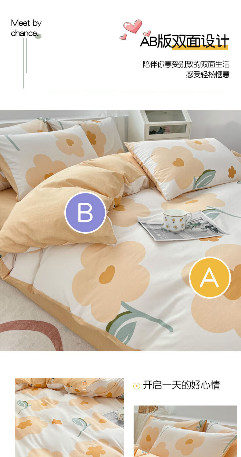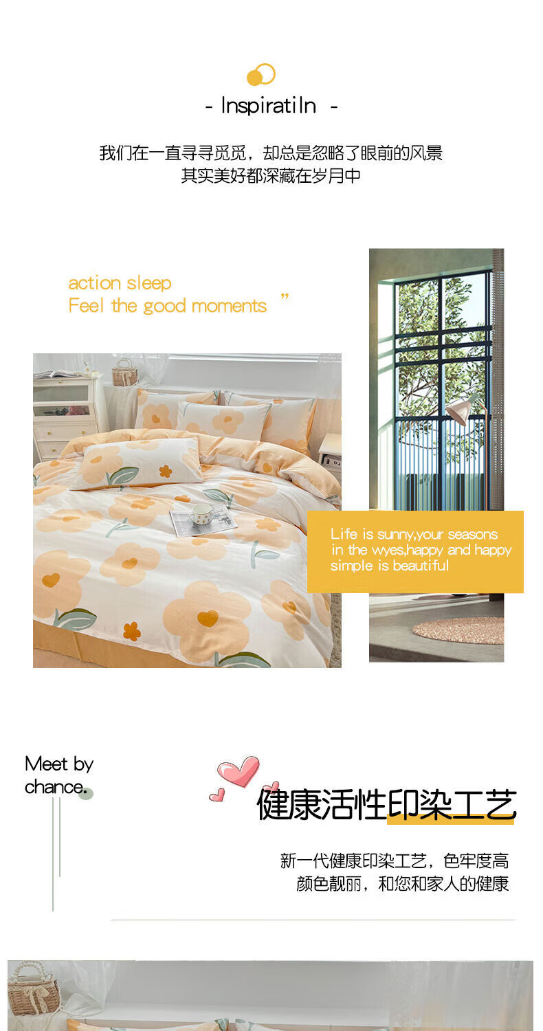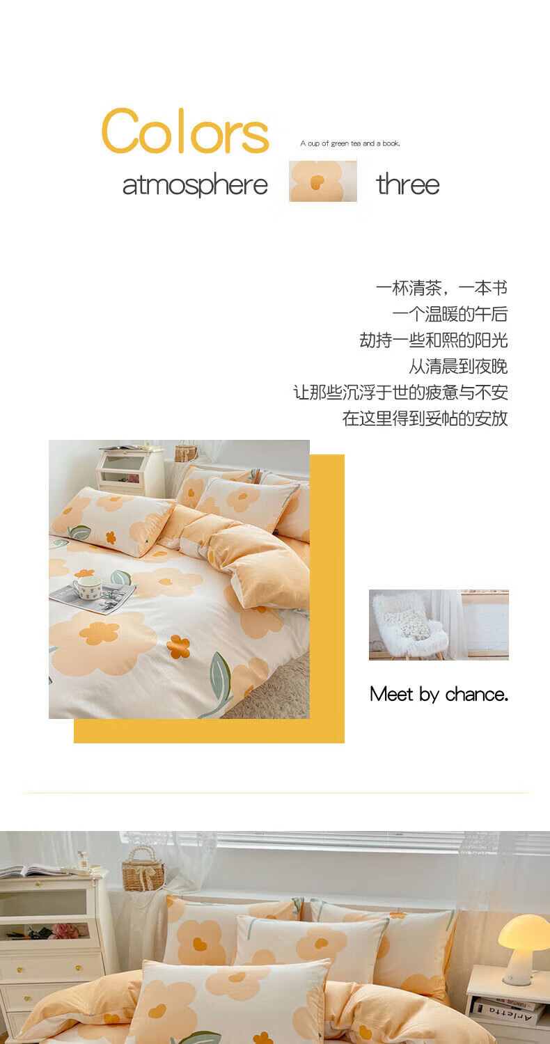 九洲鹿 J4YH500 全棉印花四件套-橘色花朵 200*230cm 混色