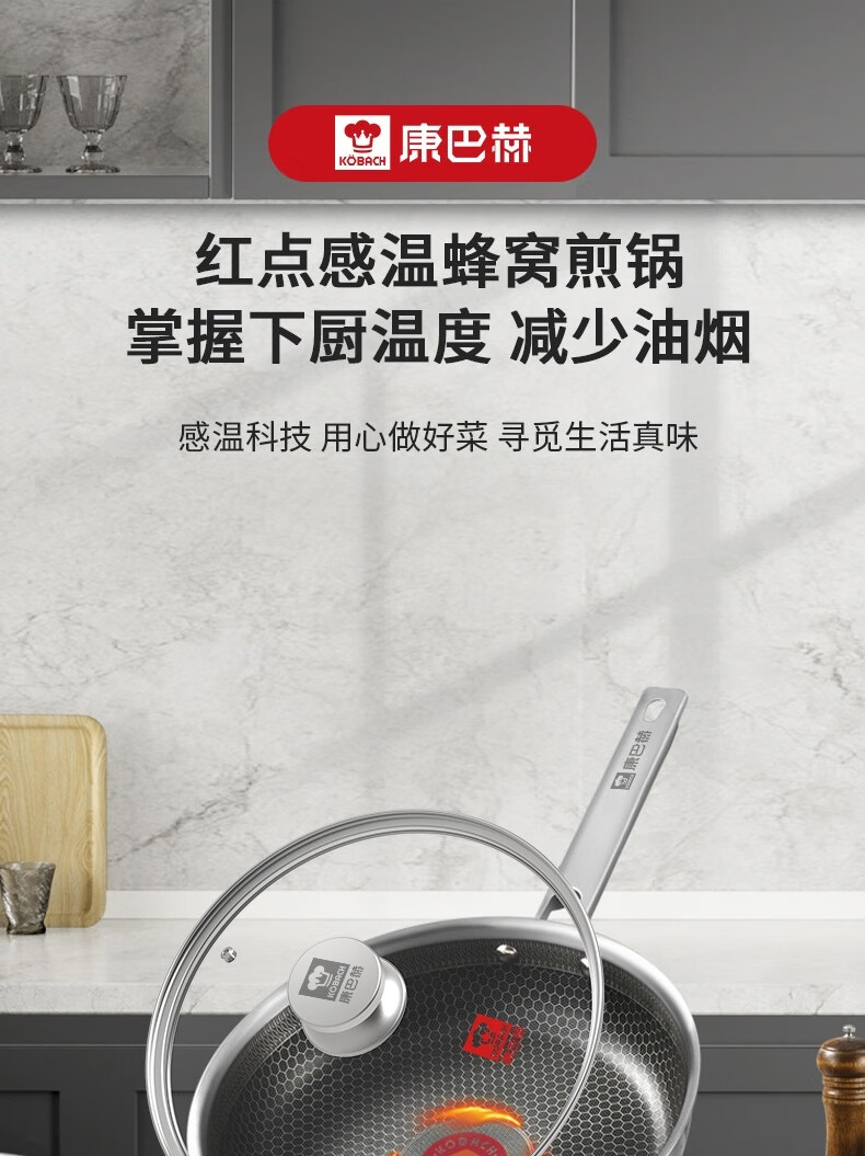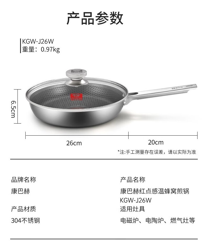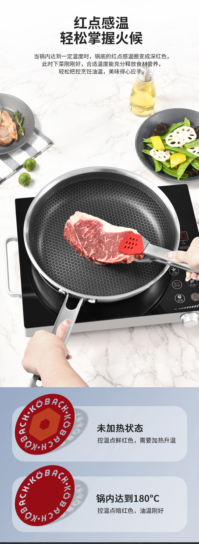 康巴赫 红点感温蜂窝煎锅26cm(无盖)KGW-J26W(14030375)/个 银灰色