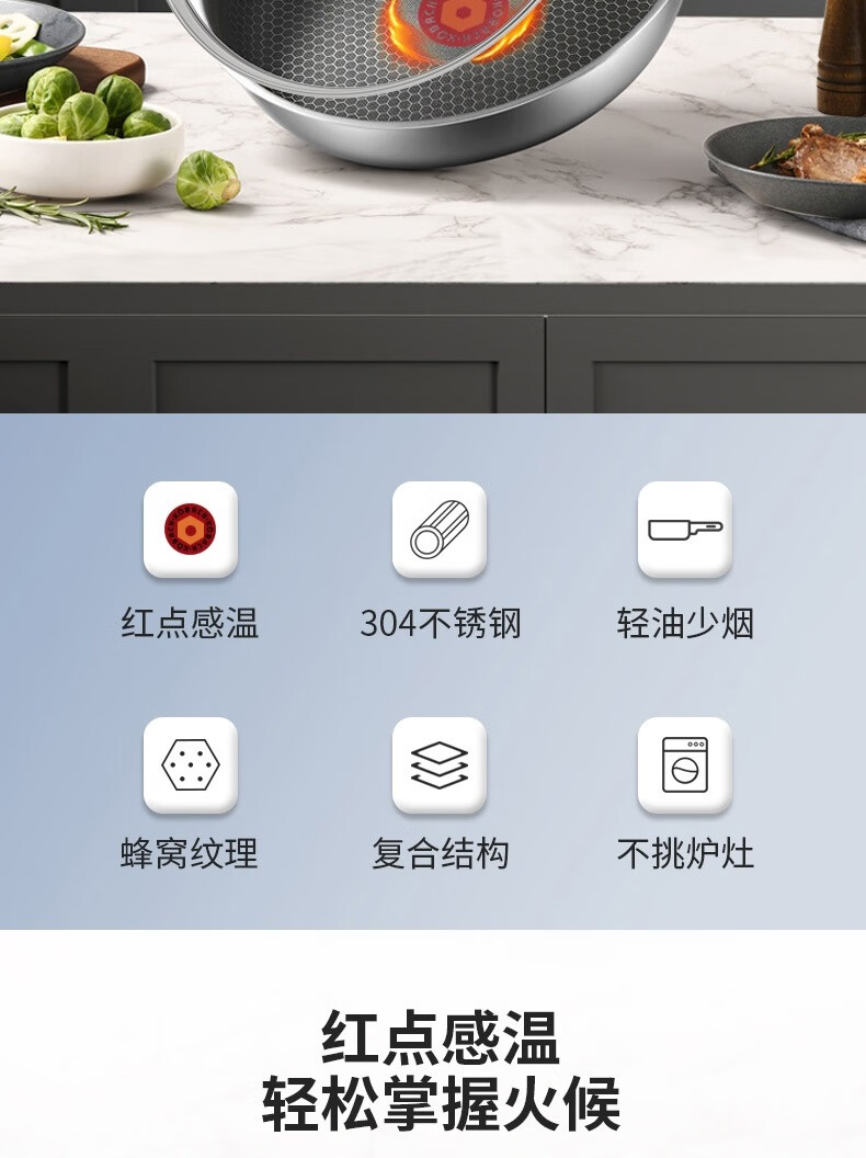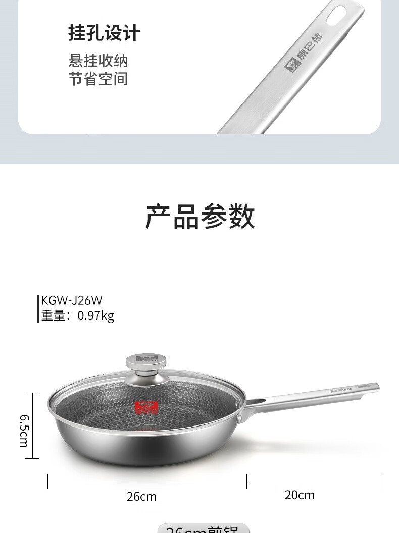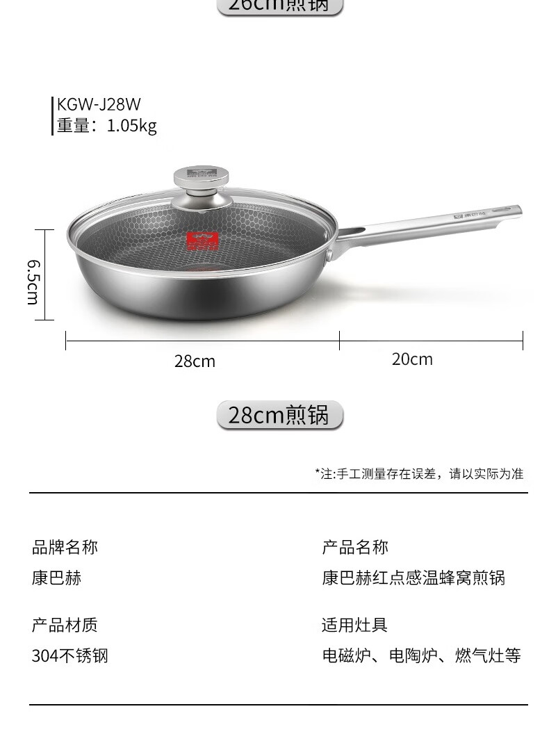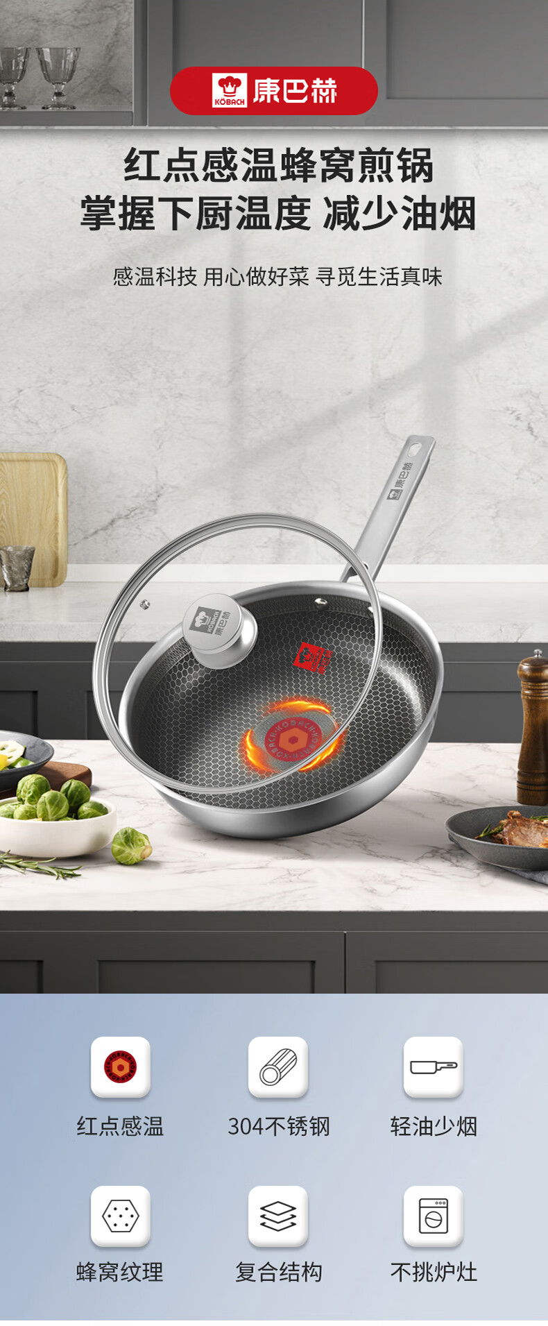 康巴赫 红点感温蜂窝煎锅26cm(无盖)KGW-J26W(14030375)/个 银灰色