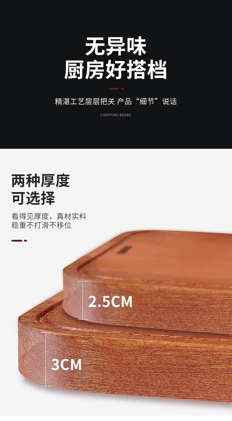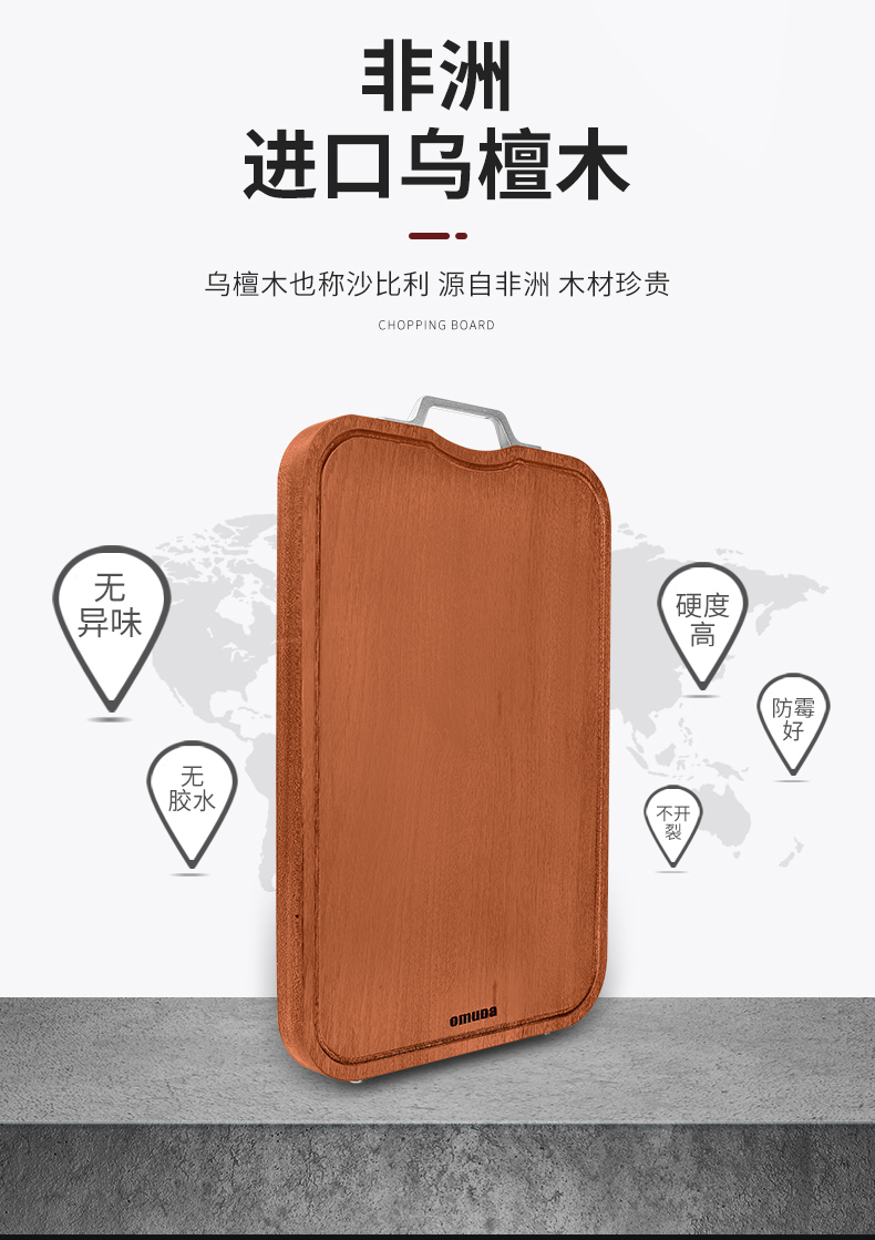 欧美达 康德爱心方形乌檀木菜板22# OCB8122(块)