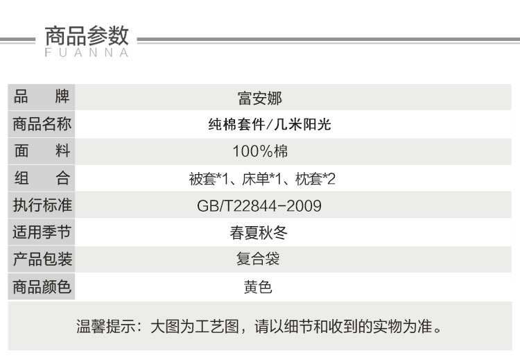 富安娜纯棉四件套几米阳光203*229CM无纺布袋装(单位:套) 黄色