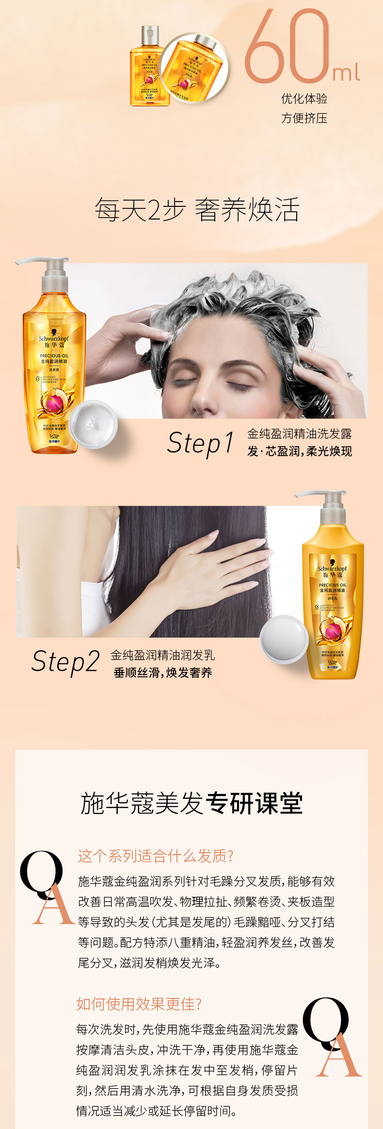 施华蔻 金纯盈润精油润发乳-600ml 单位(瓶) 奶茶杏