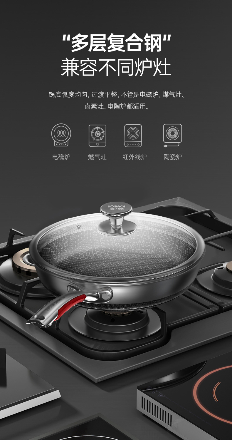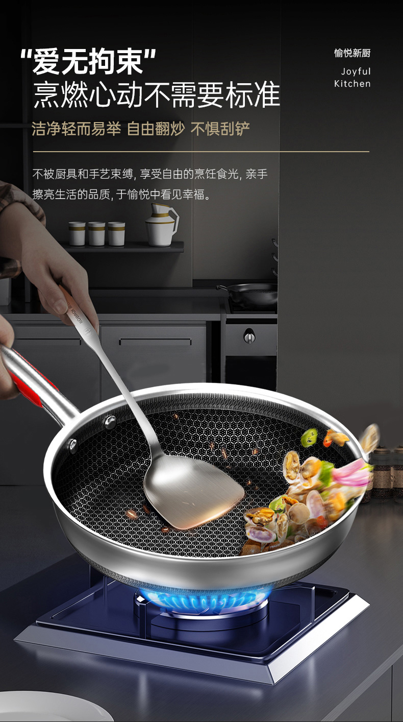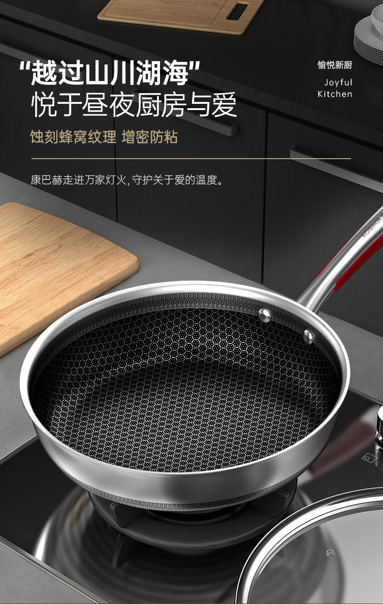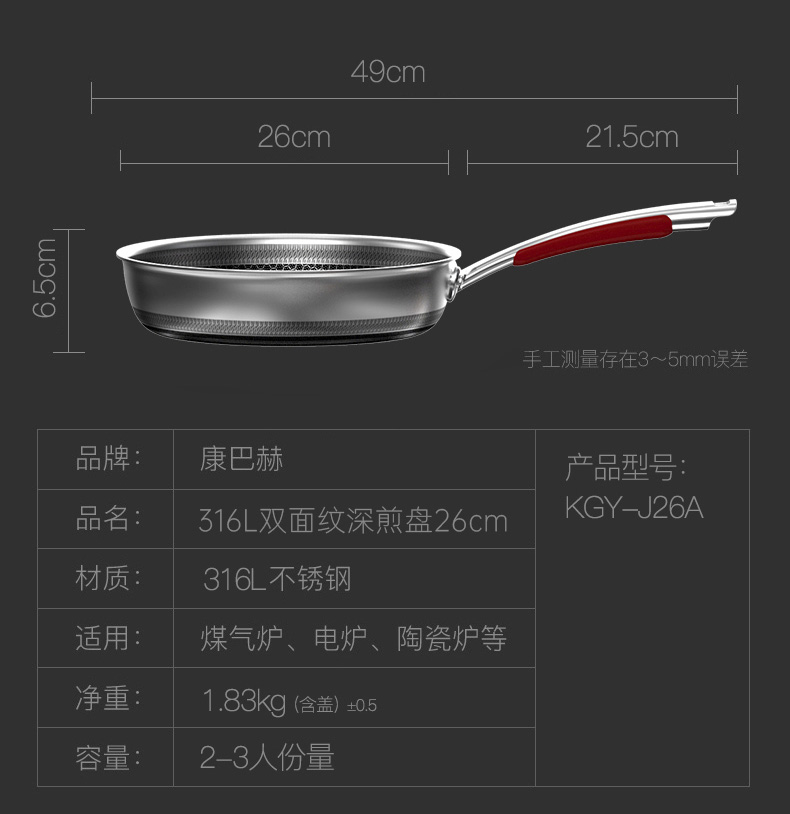 康巴赫悦厨款316L双面纹深煎盘-套装26cm带铲 KGY-J26A(14030102)/套 不锈钢色