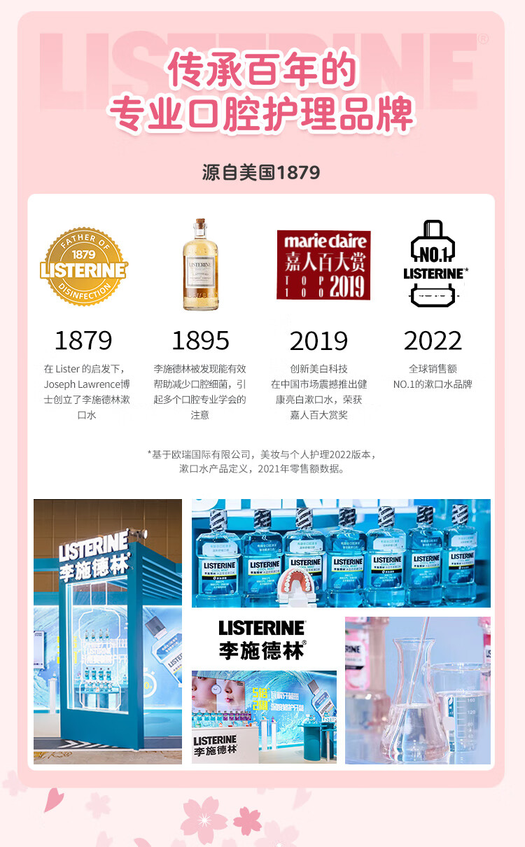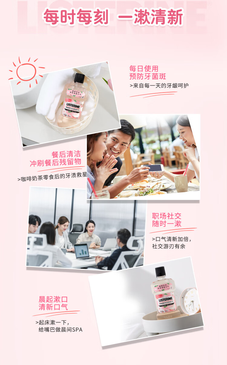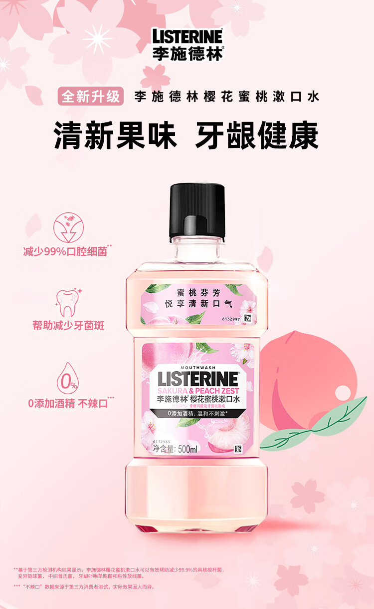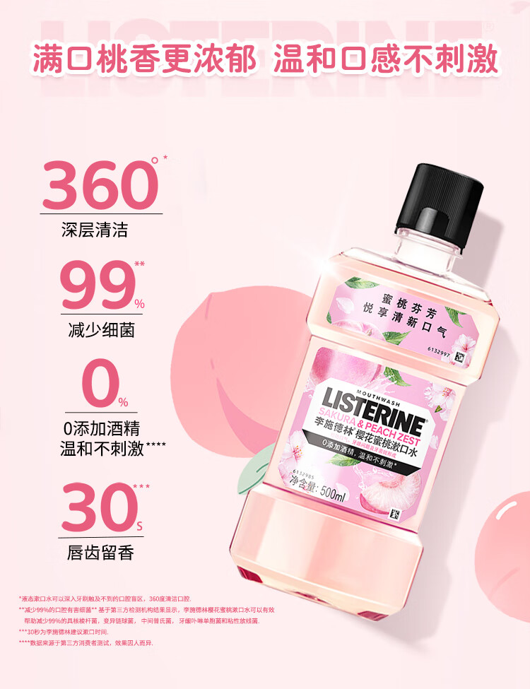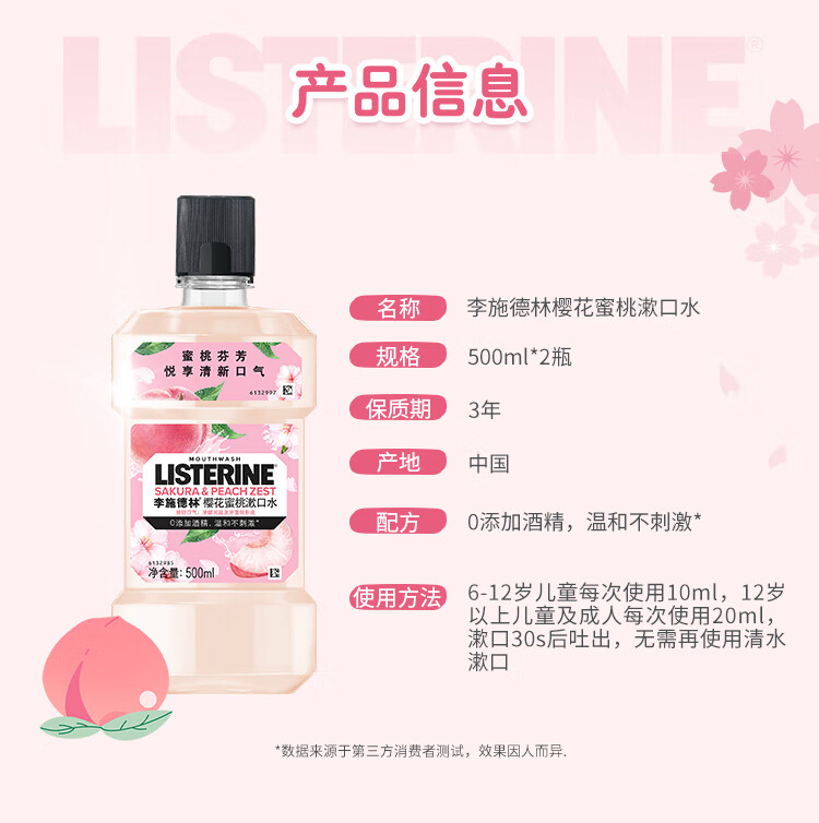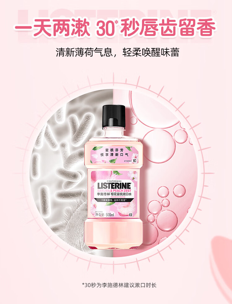 李施德林漱口水樱花蜜桃果味温和清新口气500ml*2支装(单位:组) 本白色