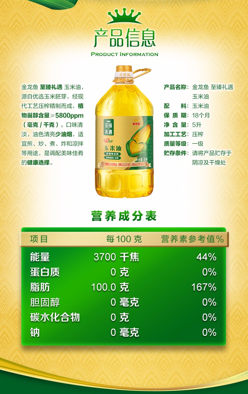 金龙鱼至臻礼遇玉米油5L 单位:桶 黄色