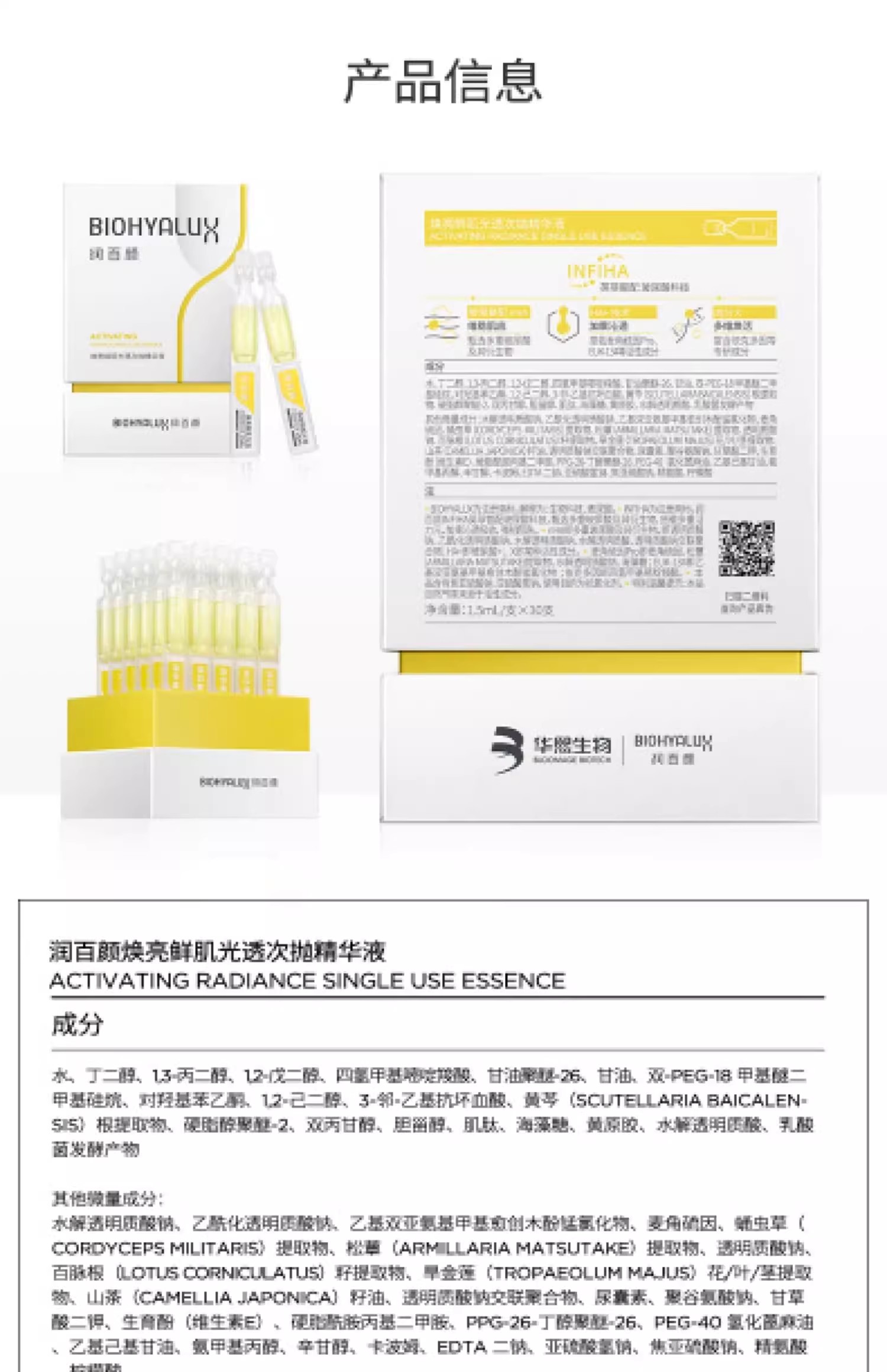 润百颜焕亮鲜肌光透次抛精华液1.5ml*30支(单位:盒)