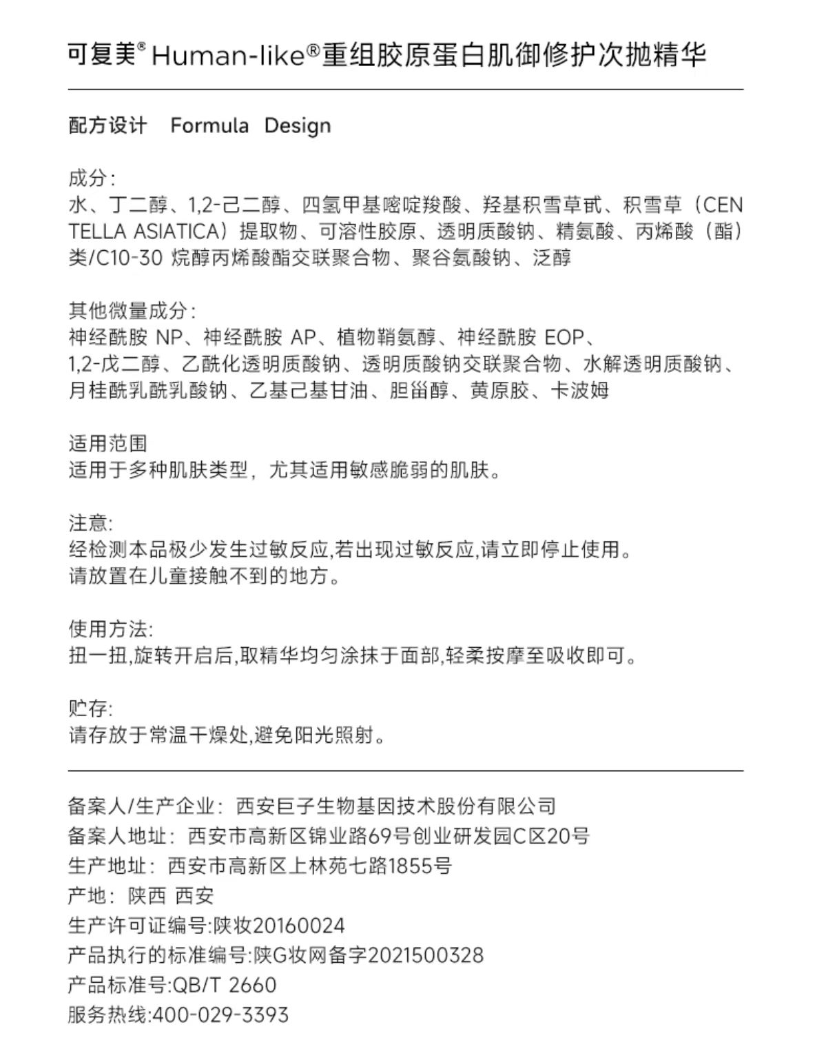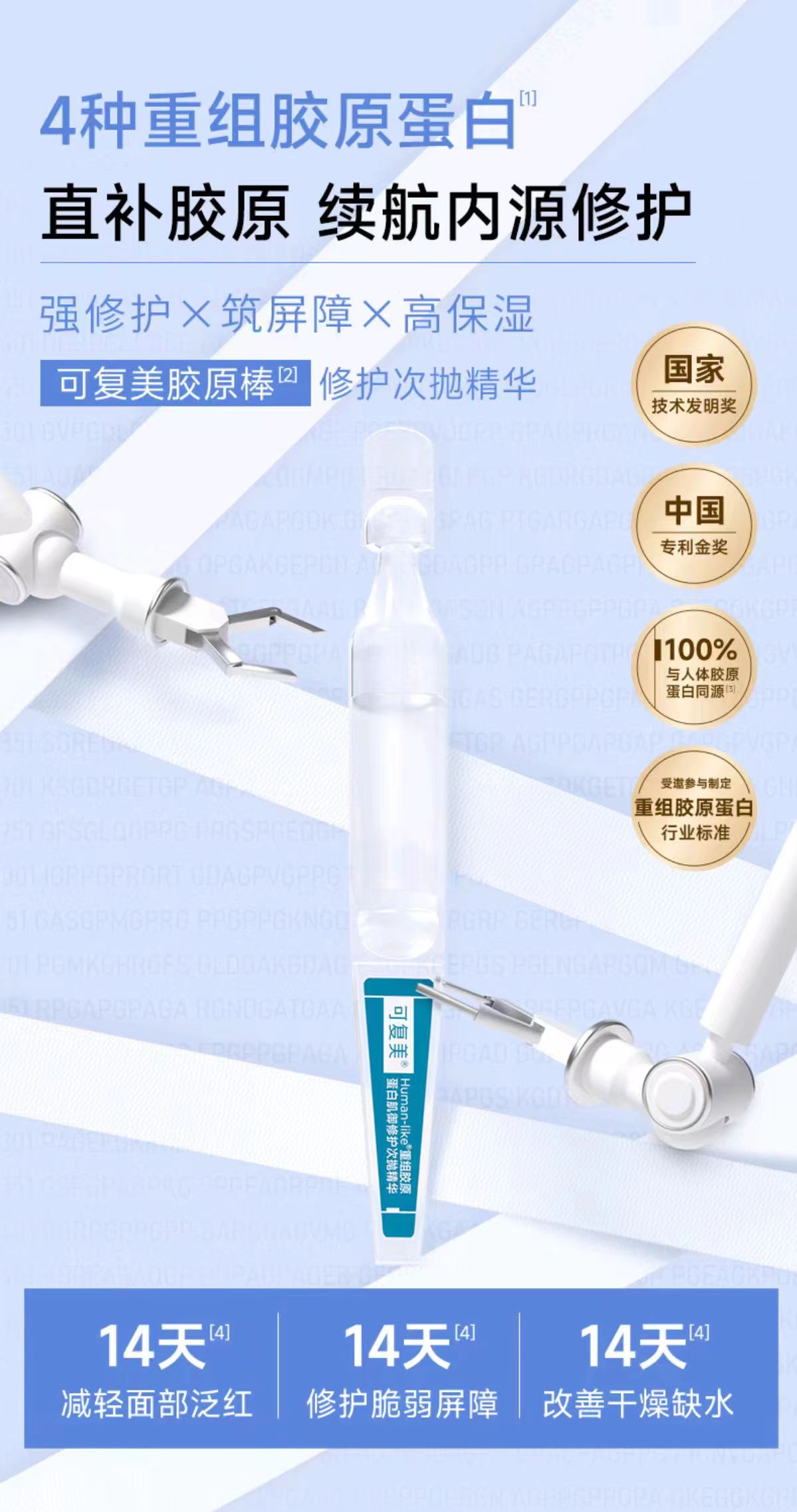 可复美胶原棒Human-like重组胶原蛋白肌御修护次抛精华30支(单位:盒)