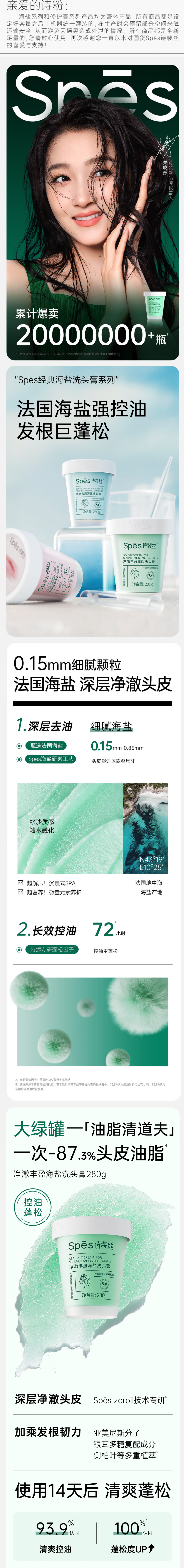 Spes诗裴丝 净澈丰盈海盐洗头膏280g(单位:瓶) 水蓝色