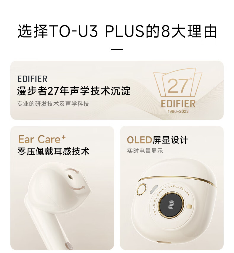 漫步者TO-U3plus蓝牙耳机白色(单位:个) 钢琴白