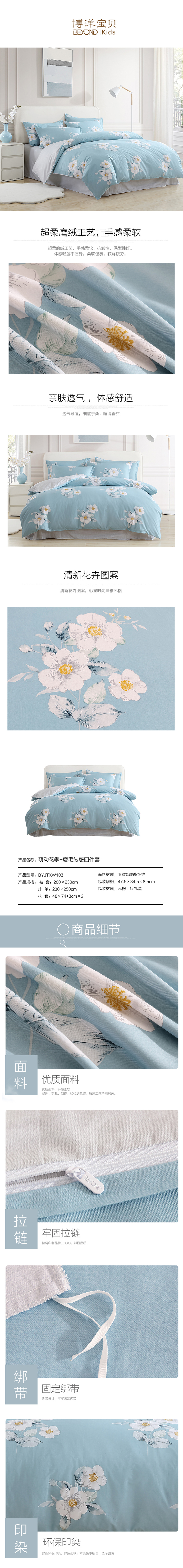 Beyond Kids/博洋宝贝 BYJTXW103 萌动花季-磨毛绒感四件套(单位:套) 图片色