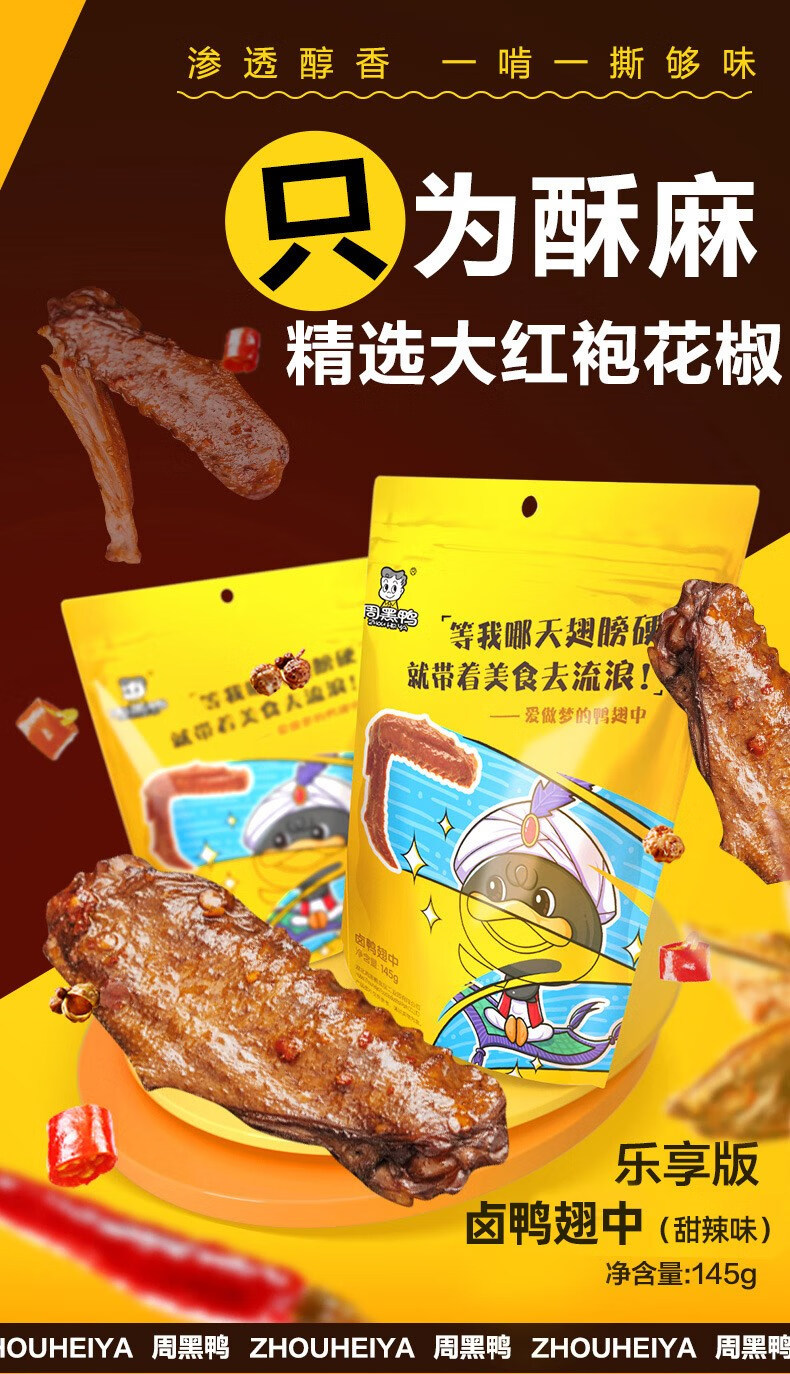【周黑鸭】卤鸭翅中(藤椒味)【颗粒145g】(单位:袋) 黑色