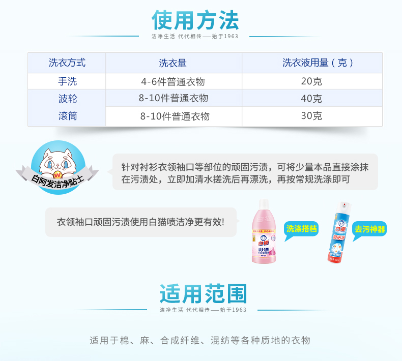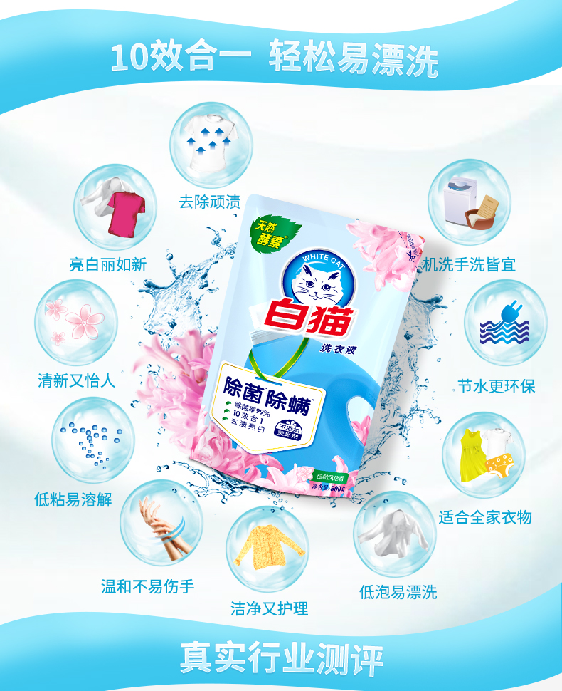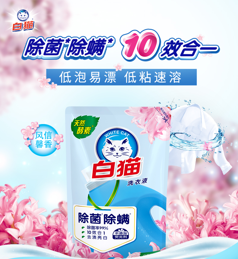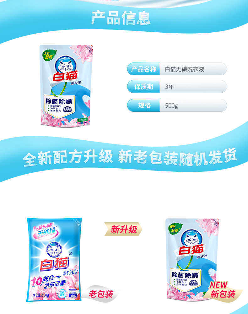 白猫无磷洗衣液500g(除菌除螨)(单位:袋)