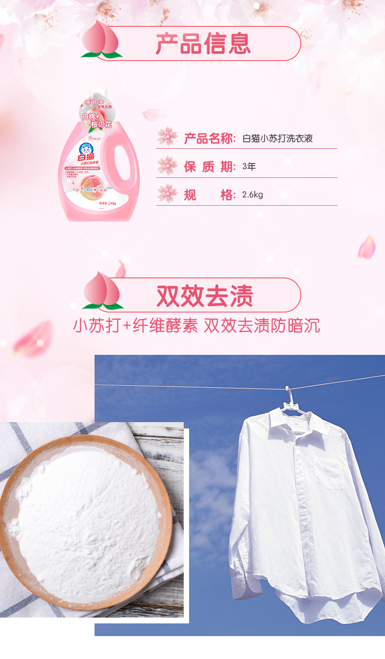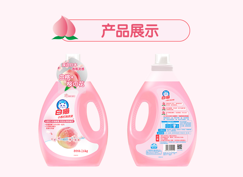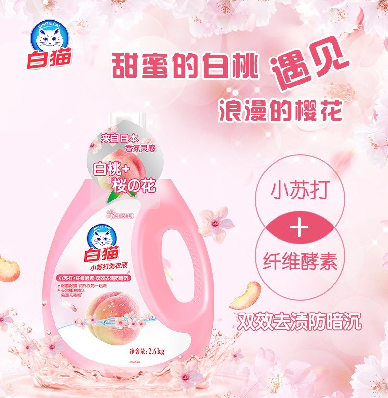 白猫小苏打白桃樱花洗衣液2.6kg(单位:瓶)