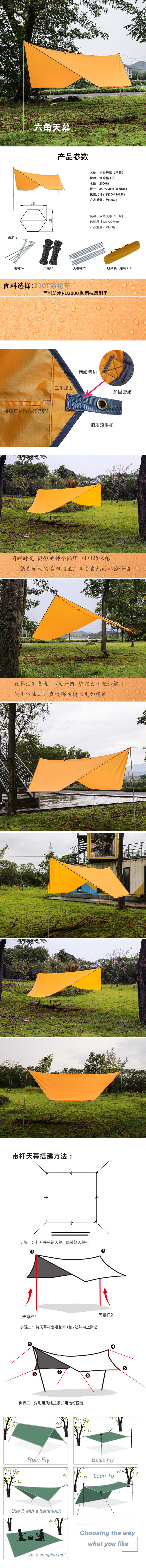 三极 TP2326 户外多功能六角天幕地席 350*290cm 天幕+撑杆(200cm/2组) 军绿涂银