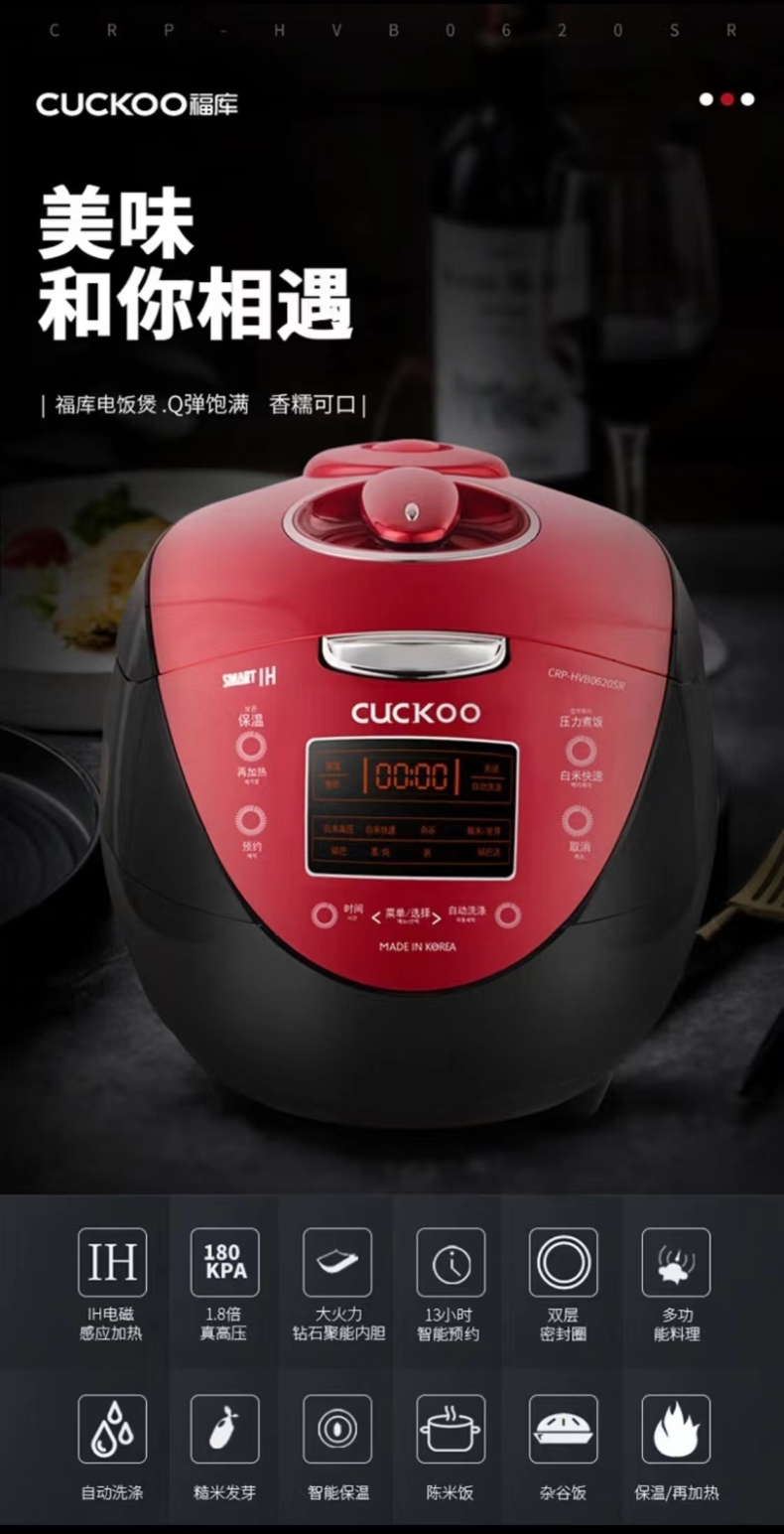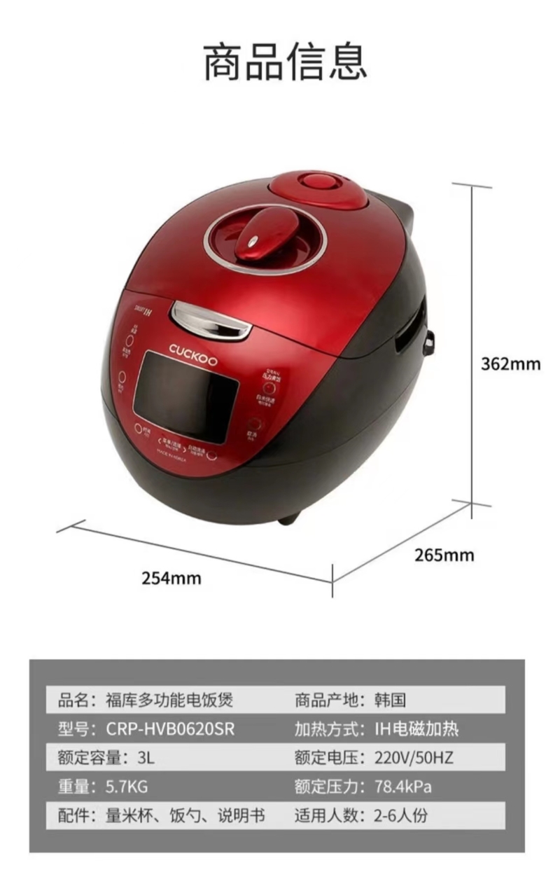 福库 钻石聚能内胆 电饭煲 CRP-HVB0625SR 3L 红色(单位:台)