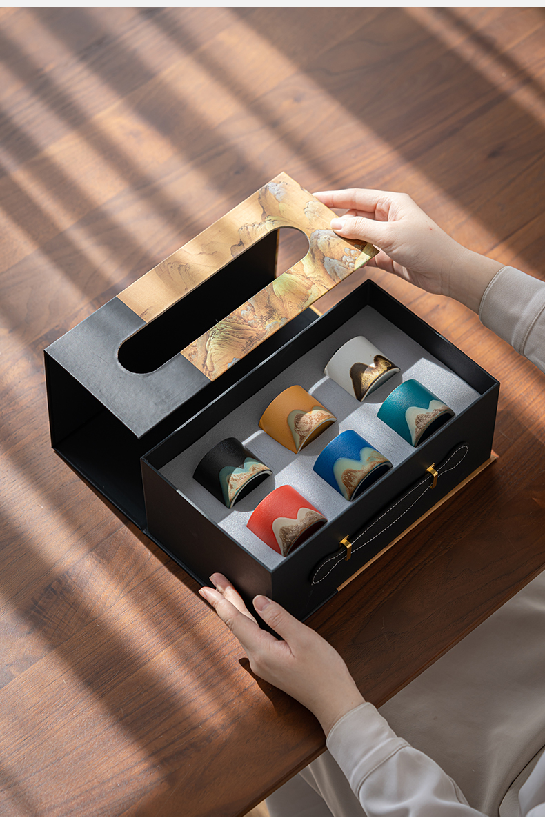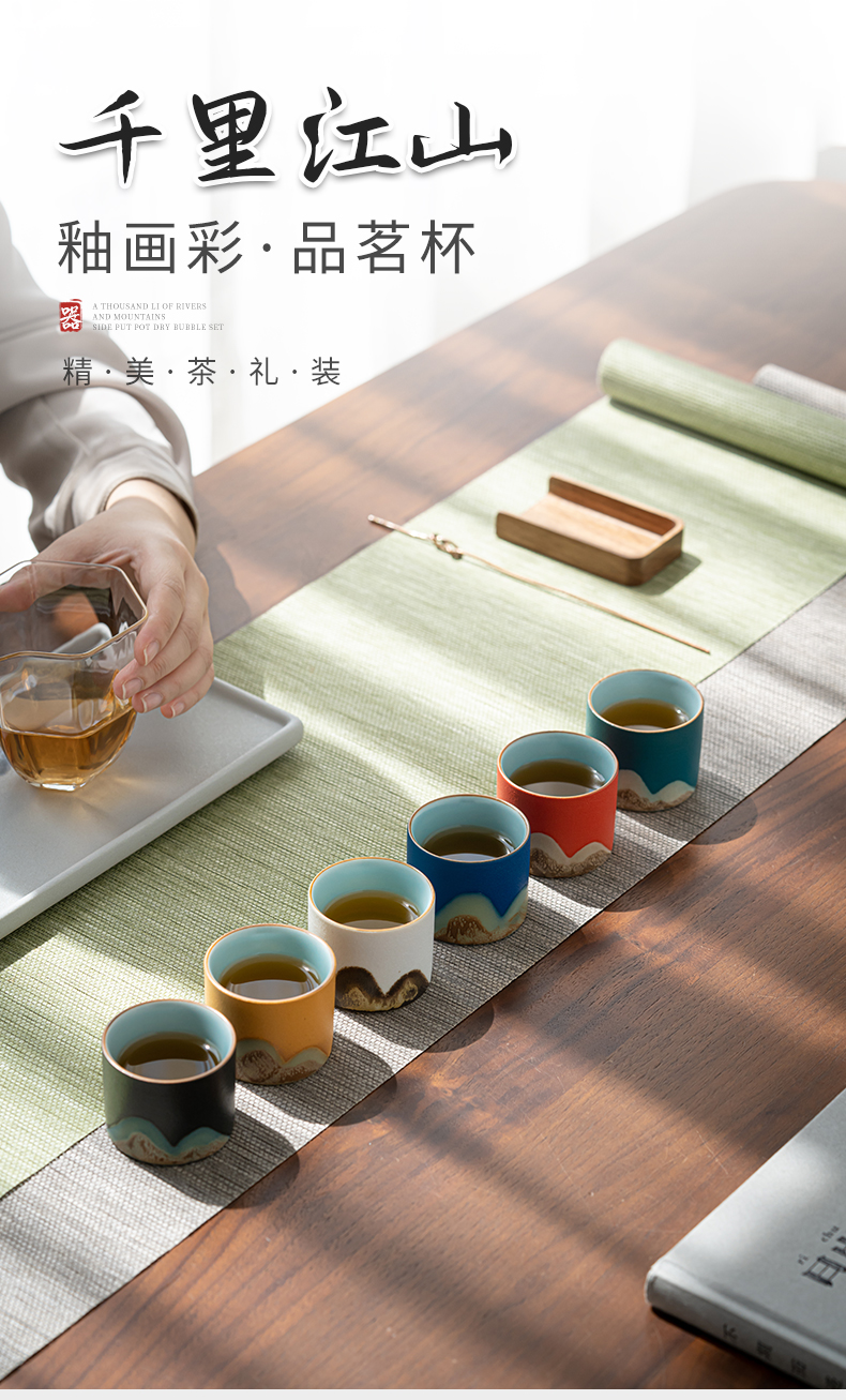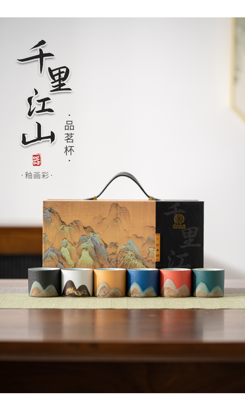 苏氏陶瓷(SUSHI CERAMICS)J0925釉画彩茶杯六色功夫杯6个杯子礼盒装(单位:套) 混色
