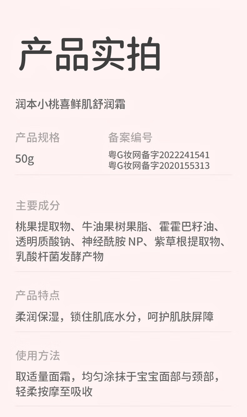 润本小桃喜透润保湿霜(真空瓶)-2023版50g/瓶