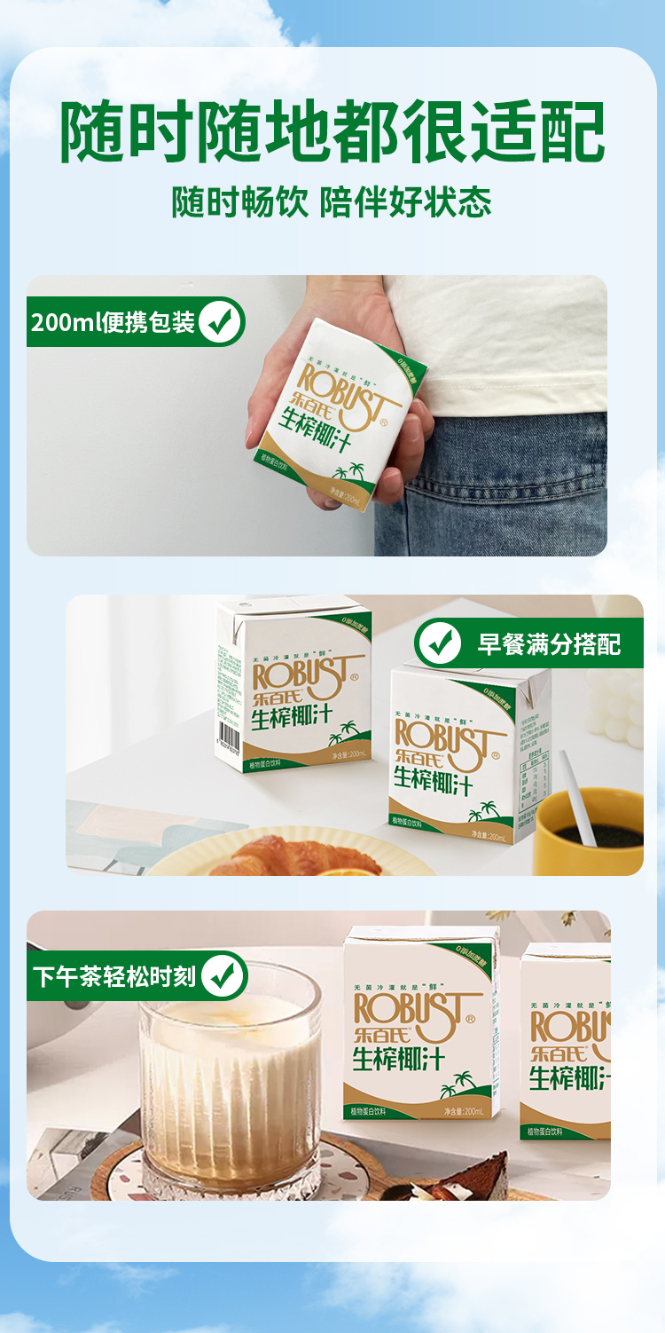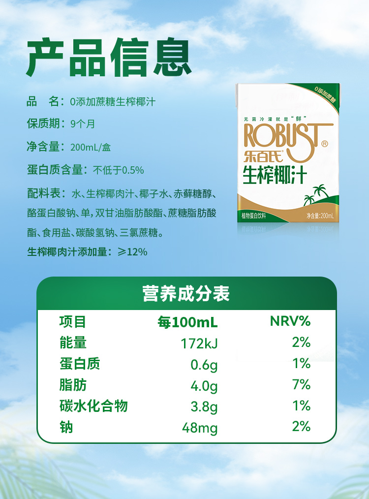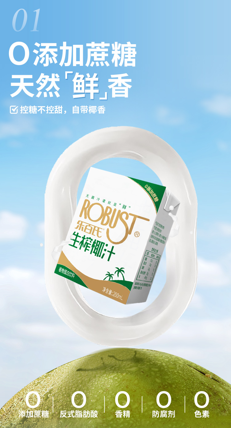 乐百氏0蔗糖生榨椰汁200ml*10/箱 本白色