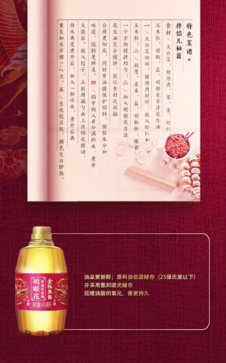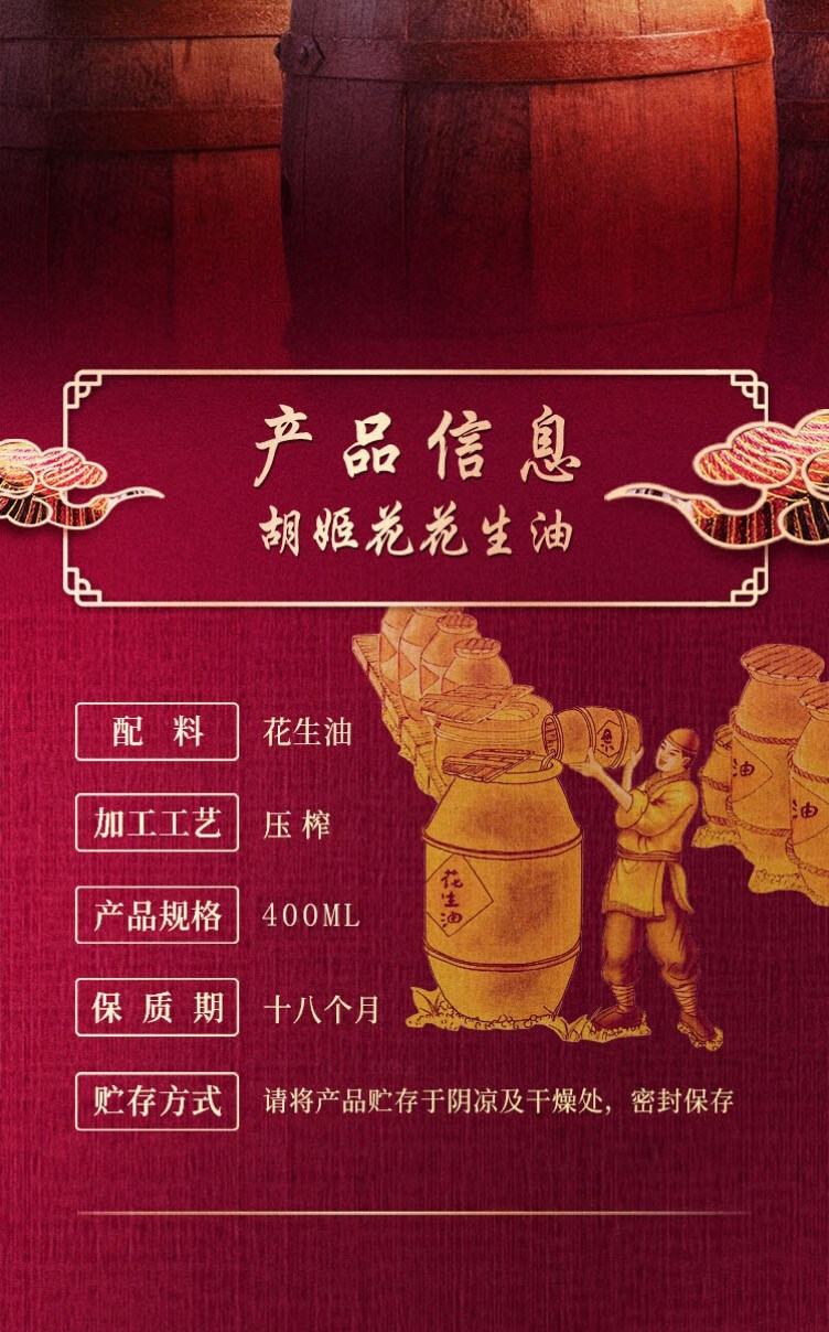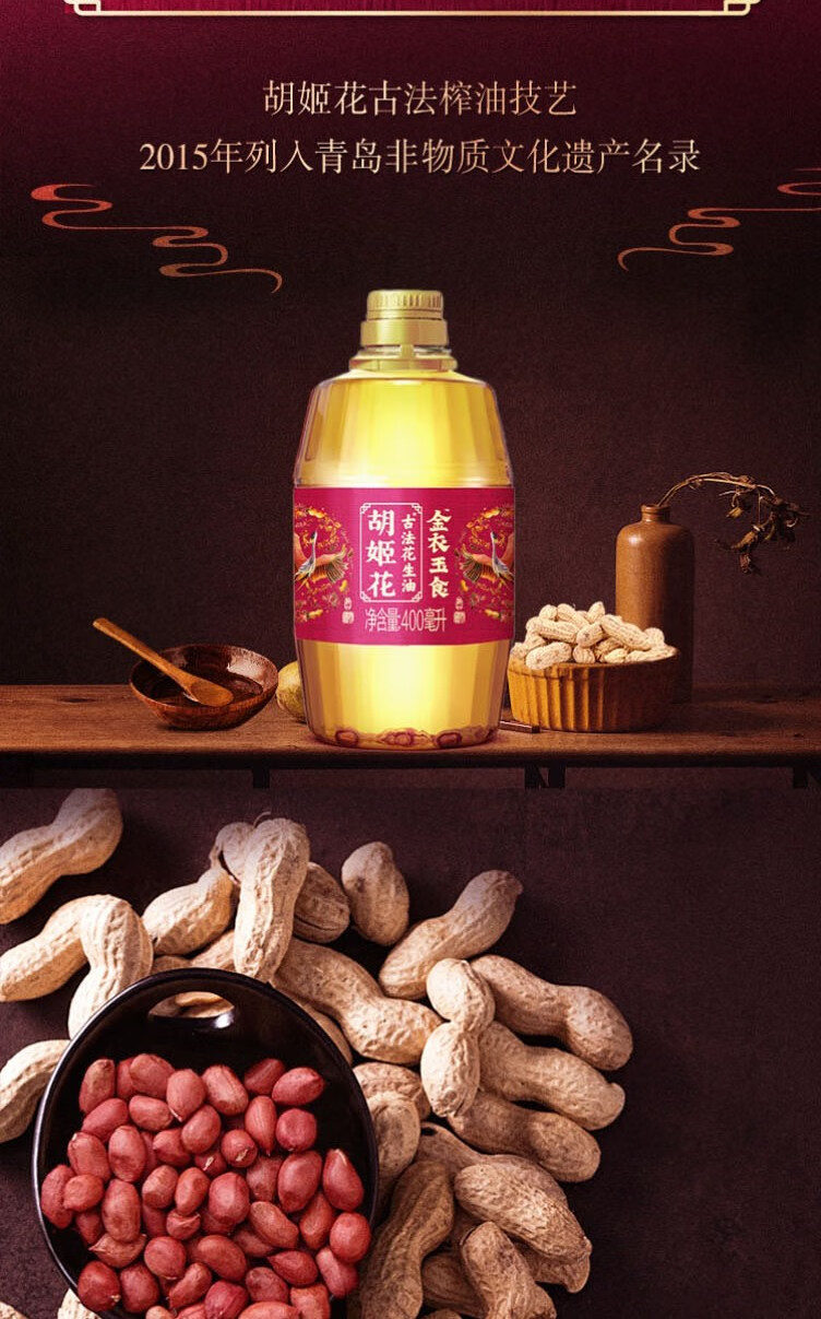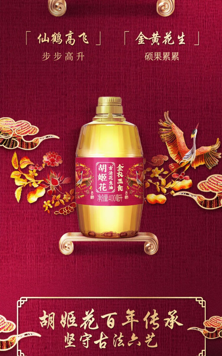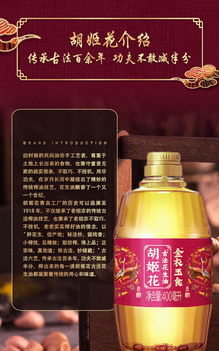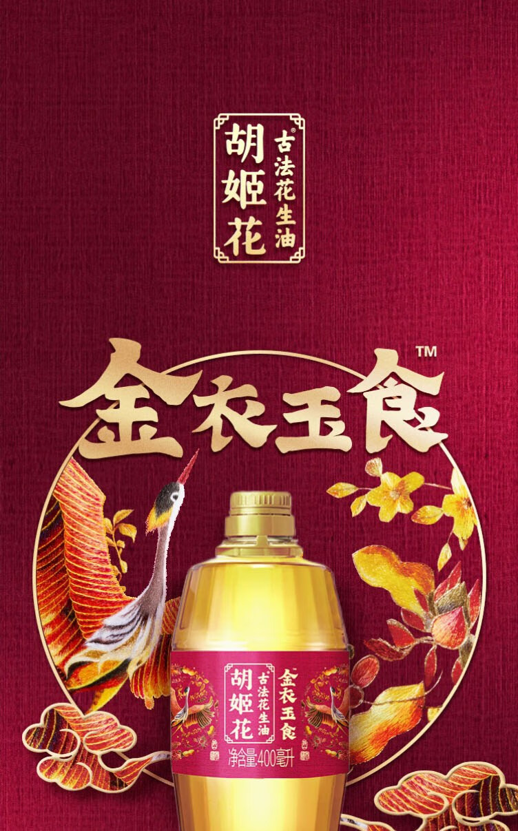 胡姬花金衣玉食古法花生油400ML(单位:瓶) 红色
