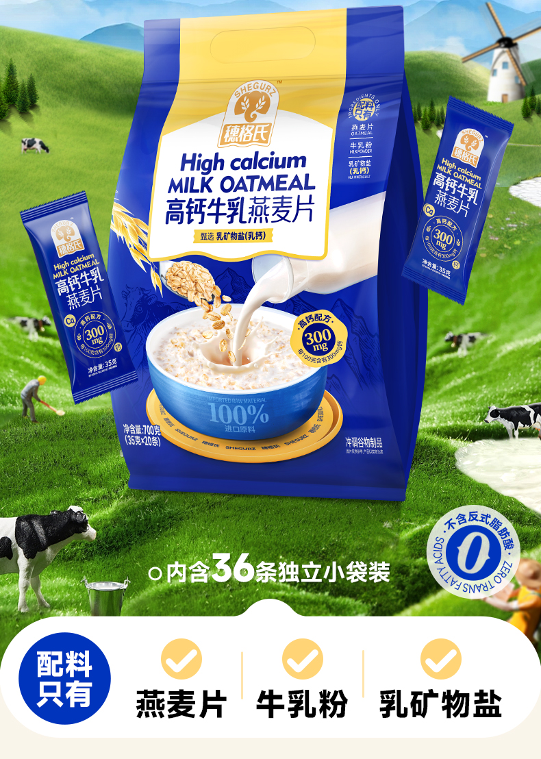 穗格氏 高钙牛乳燕麦片700g(35克×20条)(单位:袋) 绿色