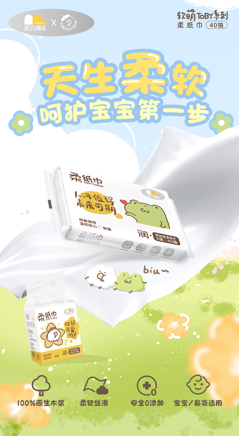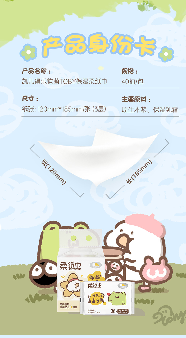 凯儿得乐软萌TOBY系列保湿柔纸巾【8提/箱】 白色