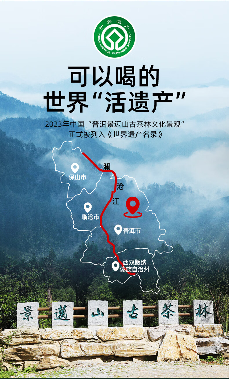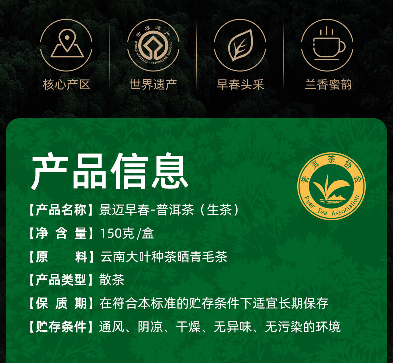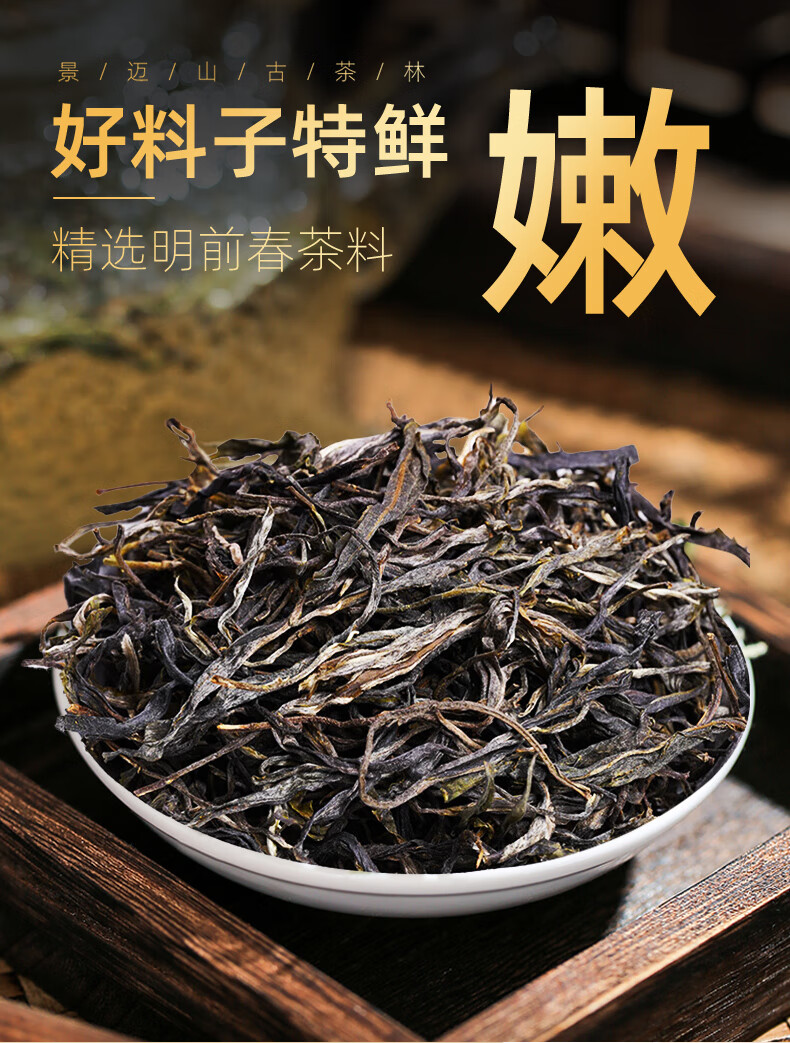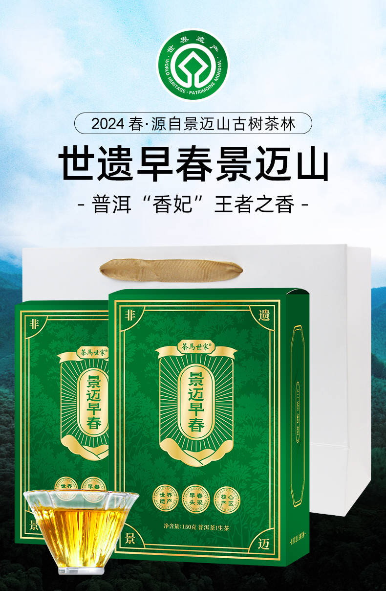 【非遗普洱】茶马世家普洱茶 景迈山古树普洱茶生茶云南2024新茶早春散茶150g*2盒 军绿色