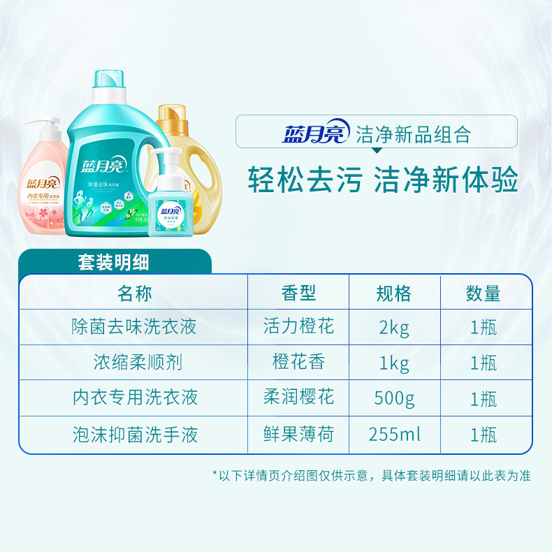 蓝月亮 洗衣液2kg内衣洗500g柔顺剂1kg泡沫洗手液255g 80003332 3.755kg四件套 混色(单位:套)