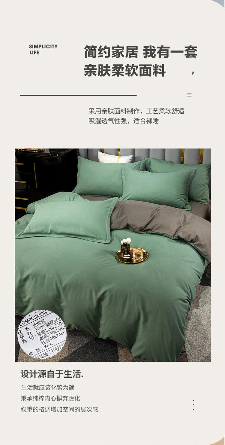 南极人N4XW086-亲肤磨毛四件套-果绿拼曦月 200*230cm(单位:套) 混色