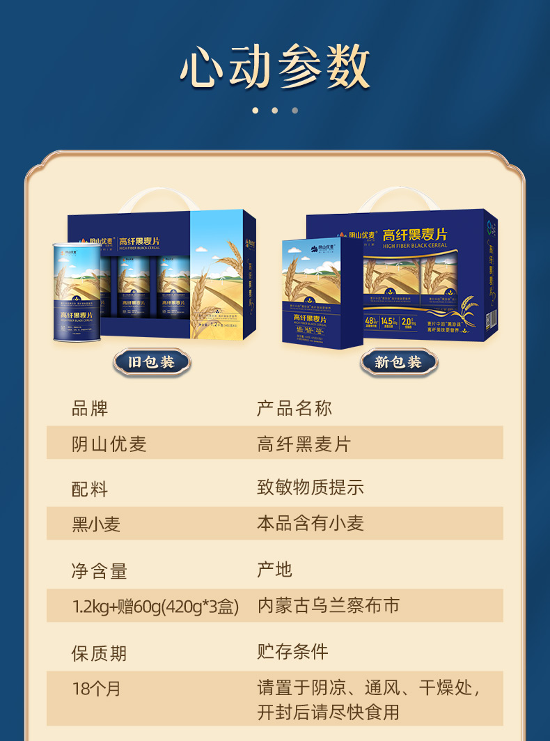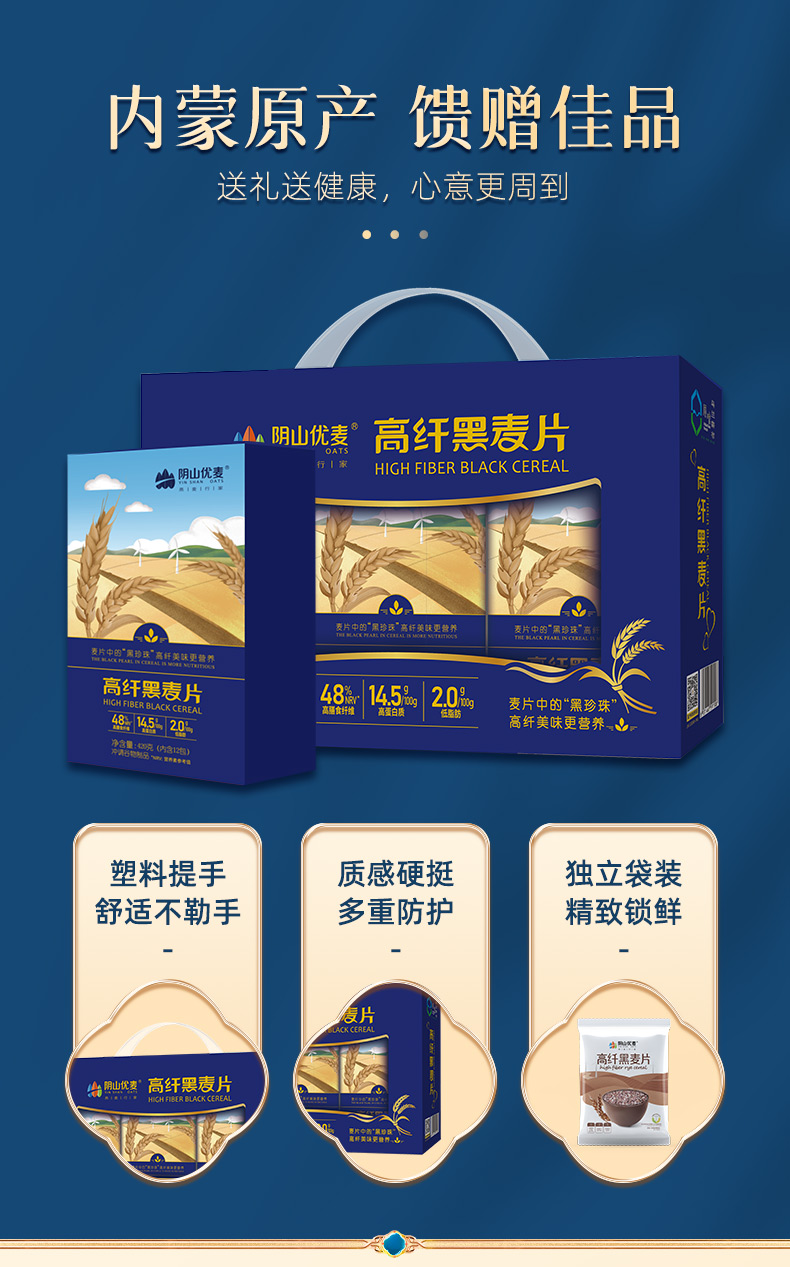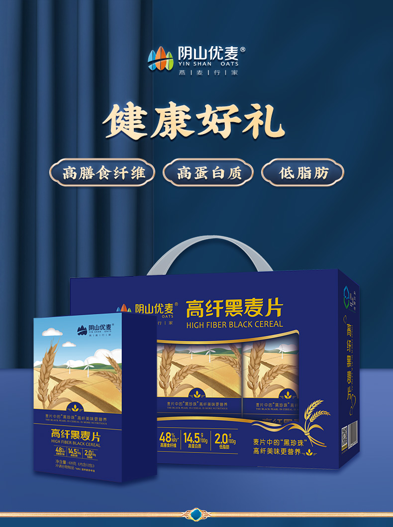阴山优麦高纤黑麦片 1.2kg 单位:盒 曜石黑