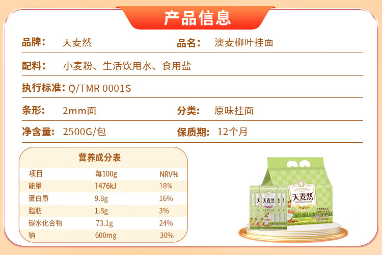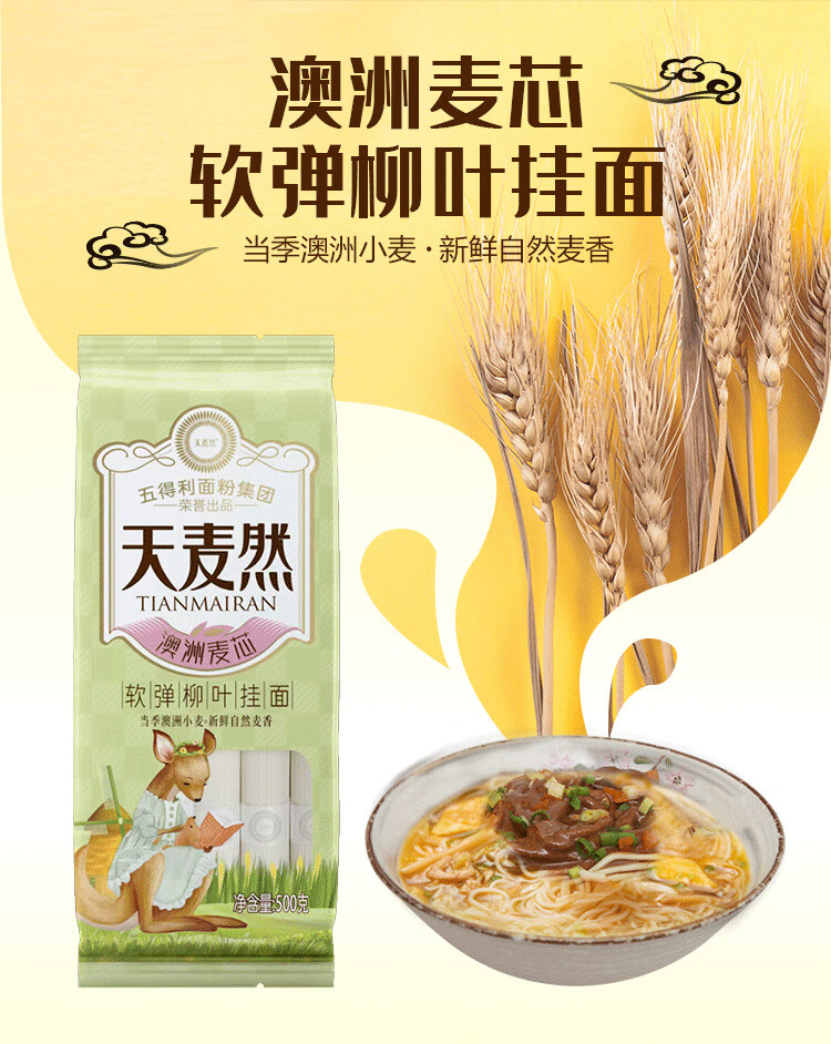 五得利(WUDELI)天麦然 澳洲麦芯软弹柳叶挂面500g*5(单位:袋) 绿色