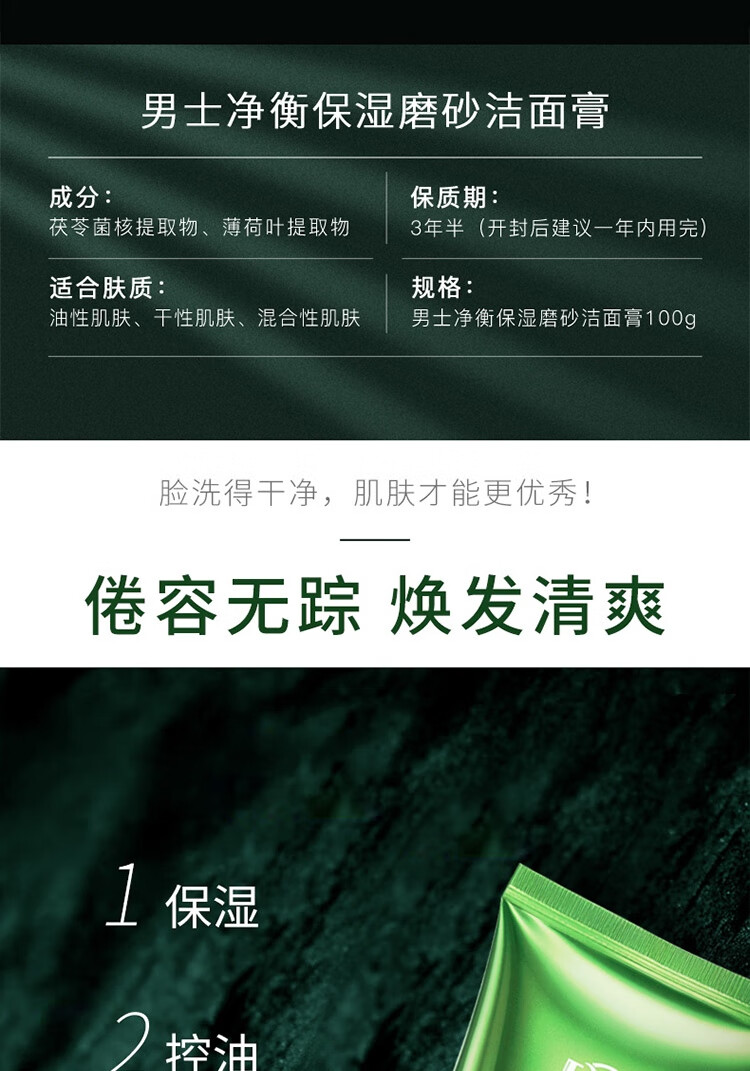 男士净衡保湿磨砂洁面膏100g(单位:支) 柠绿色