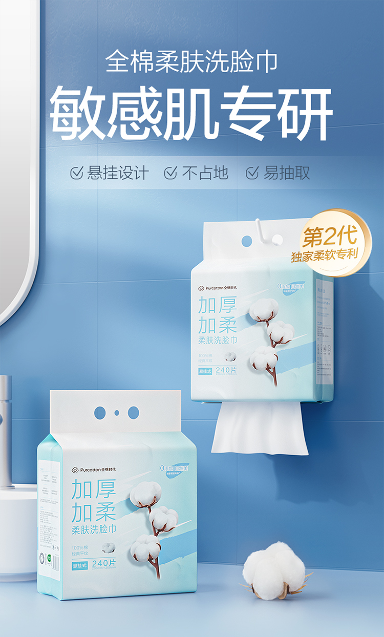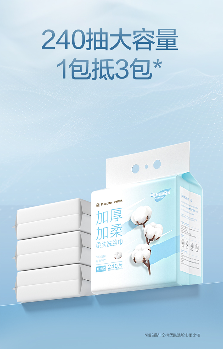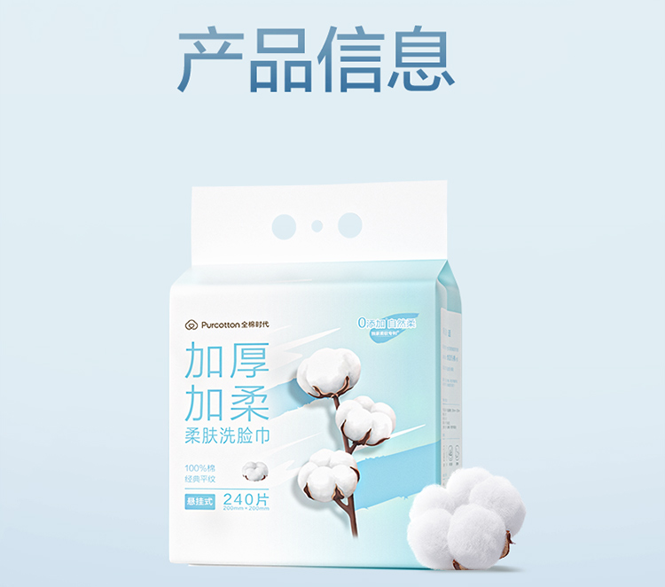 全棉时代全棉柔肤洗脸巾悬挂装200mm*200mm 240片/包(单位:包) 白色