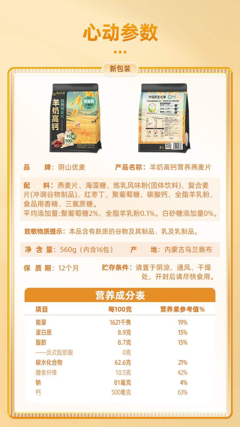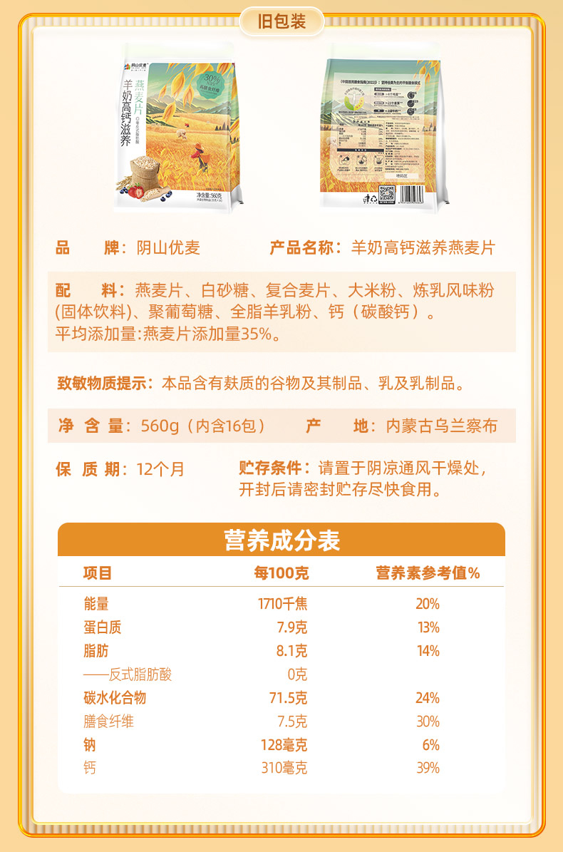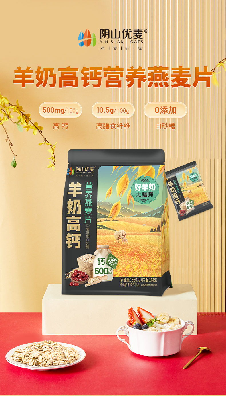 阴山优麦羊奶高钙滋养燕麦片 560克(35克×16)*3 单位:袋 莓果色